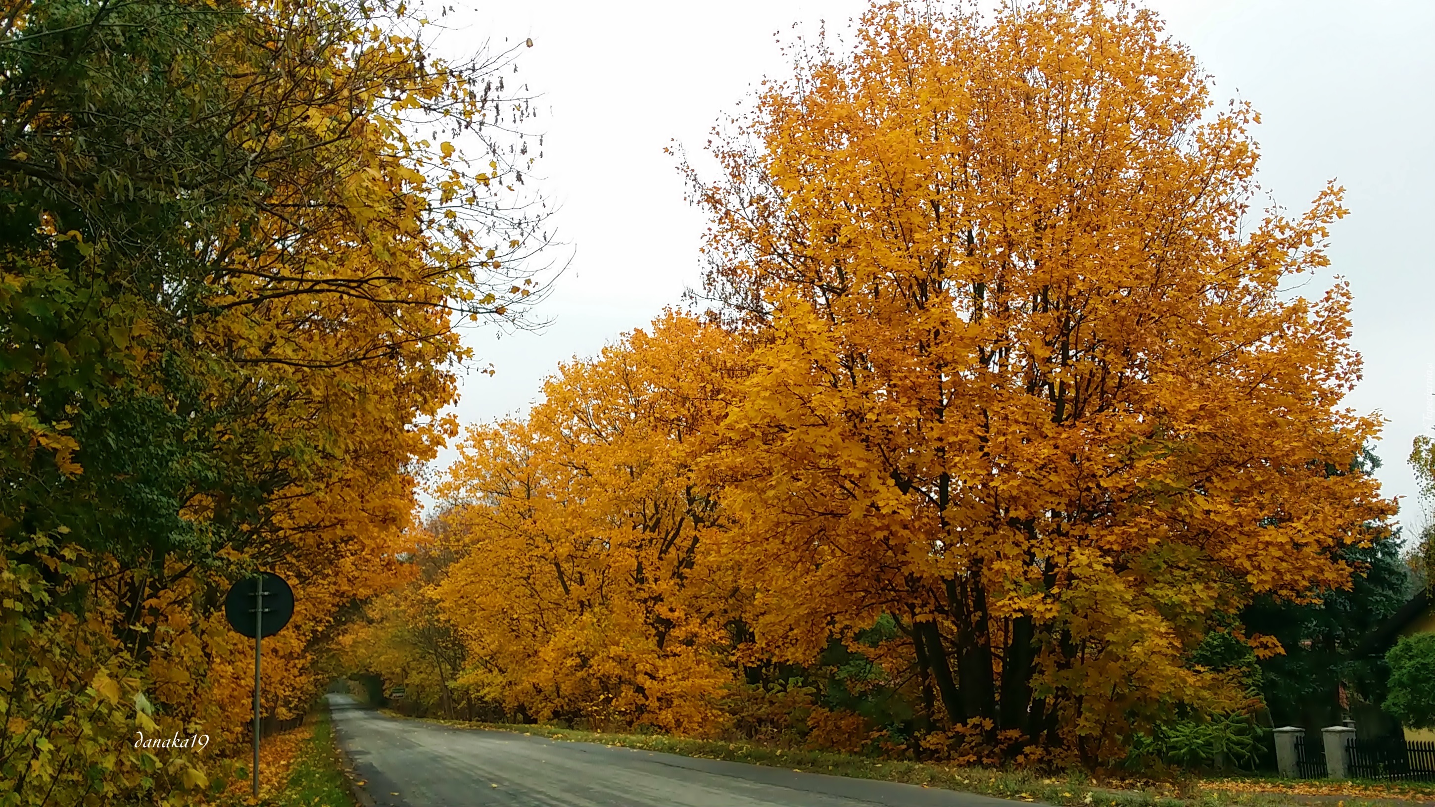 Edytor tapety: Złota, Jesień, Droga, Drzewa