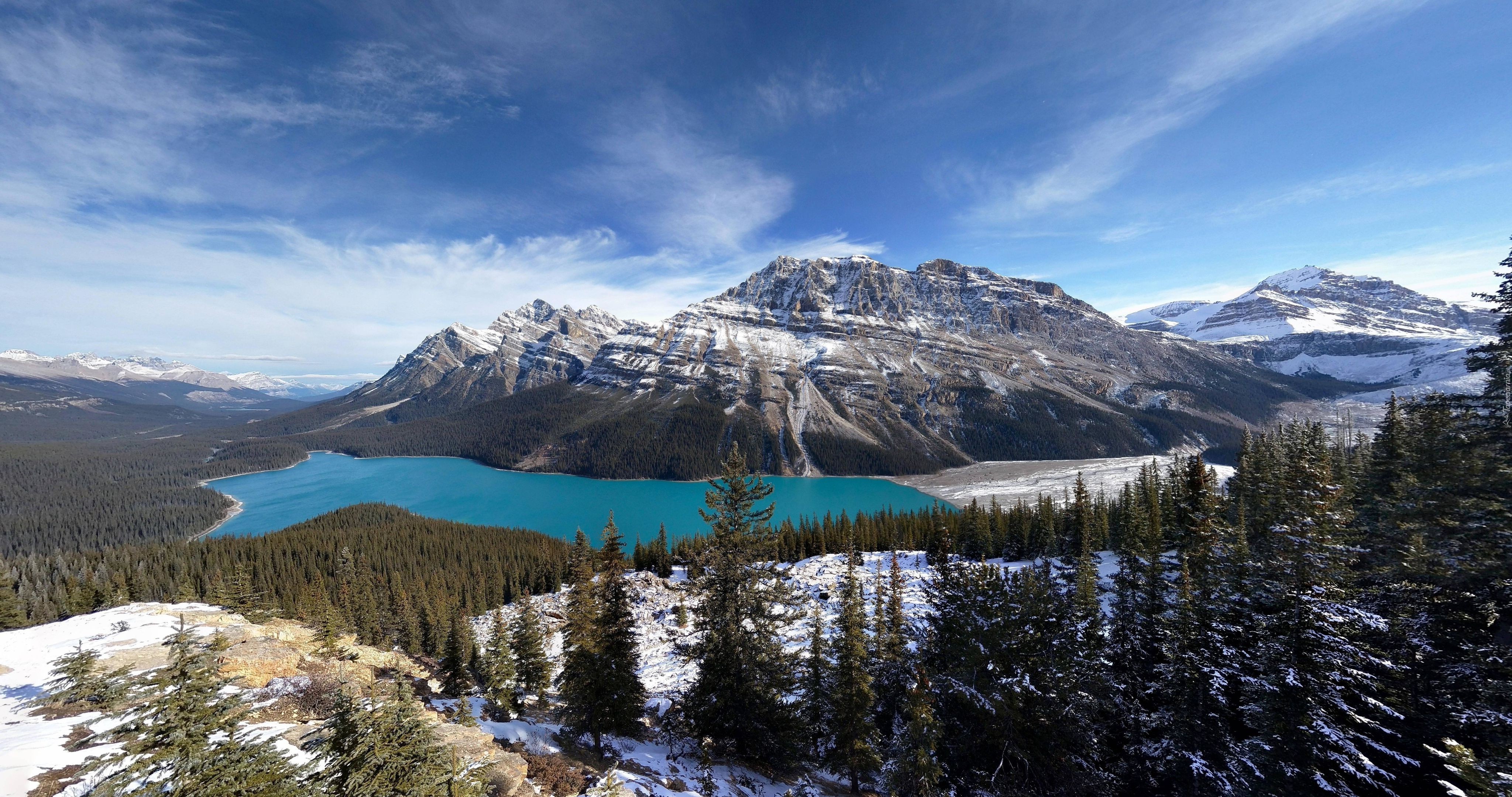 Edytor tapety: Jezioro i ośnieżone szczyty