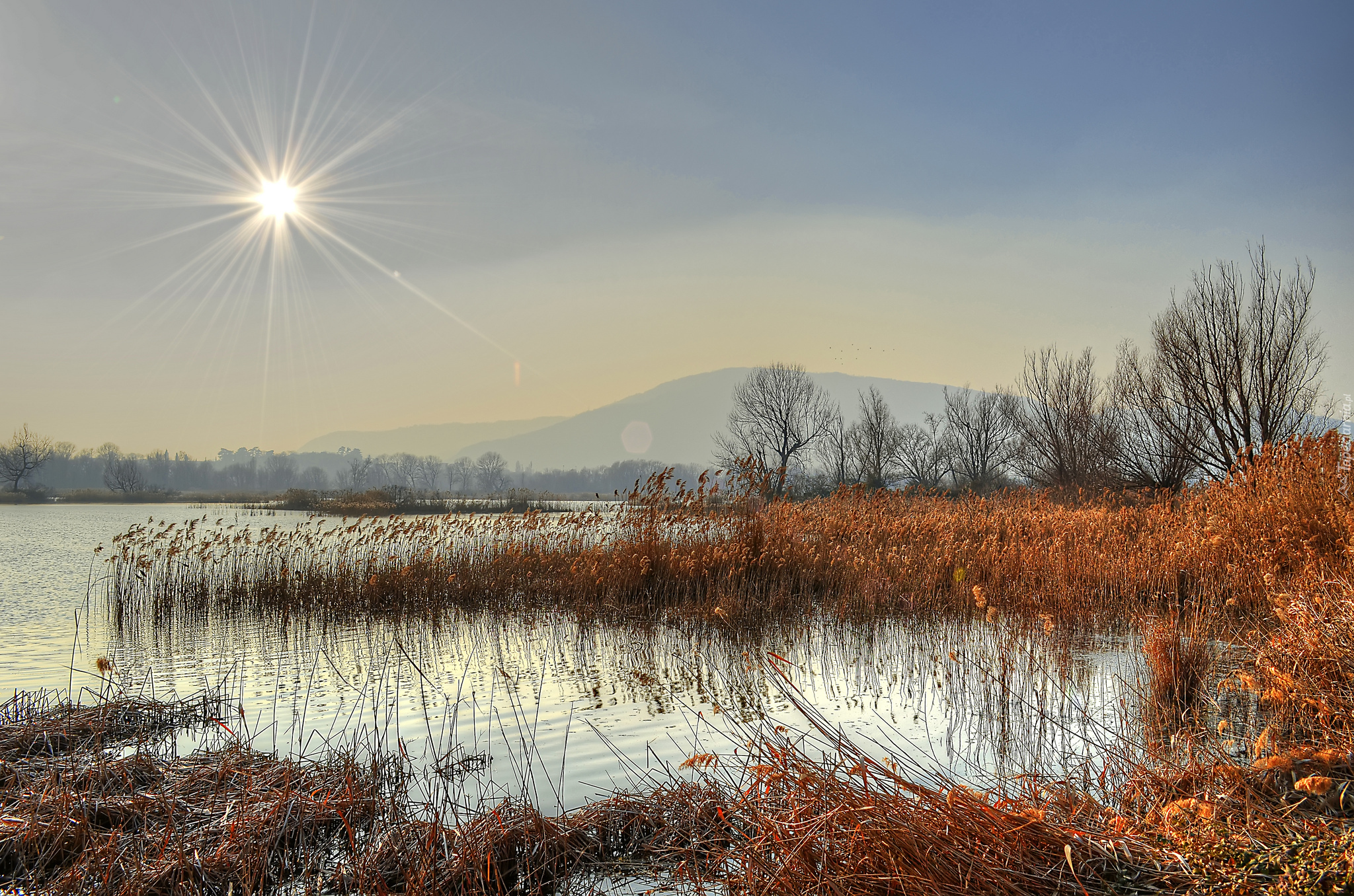 Edytor tapety: Trzciny nad jeziorem