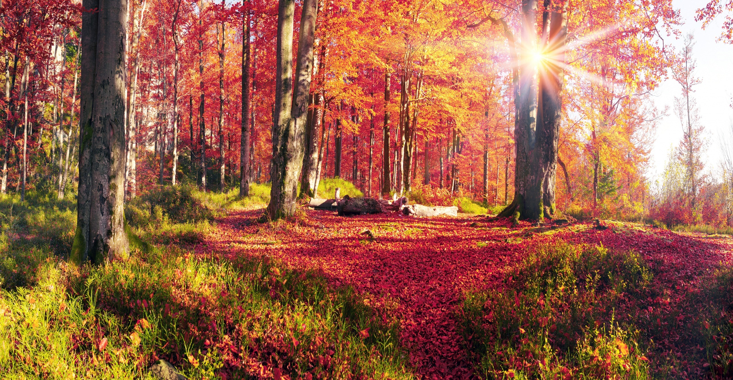 Edytor tapety: Promienie słońca w jesiennym lesie
