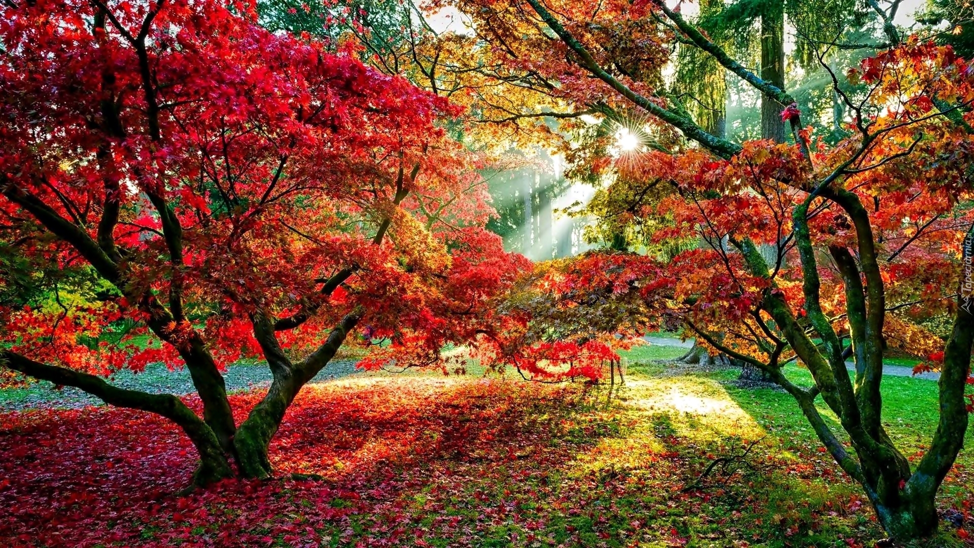 Edytor tapety: Promienie słońca w parku