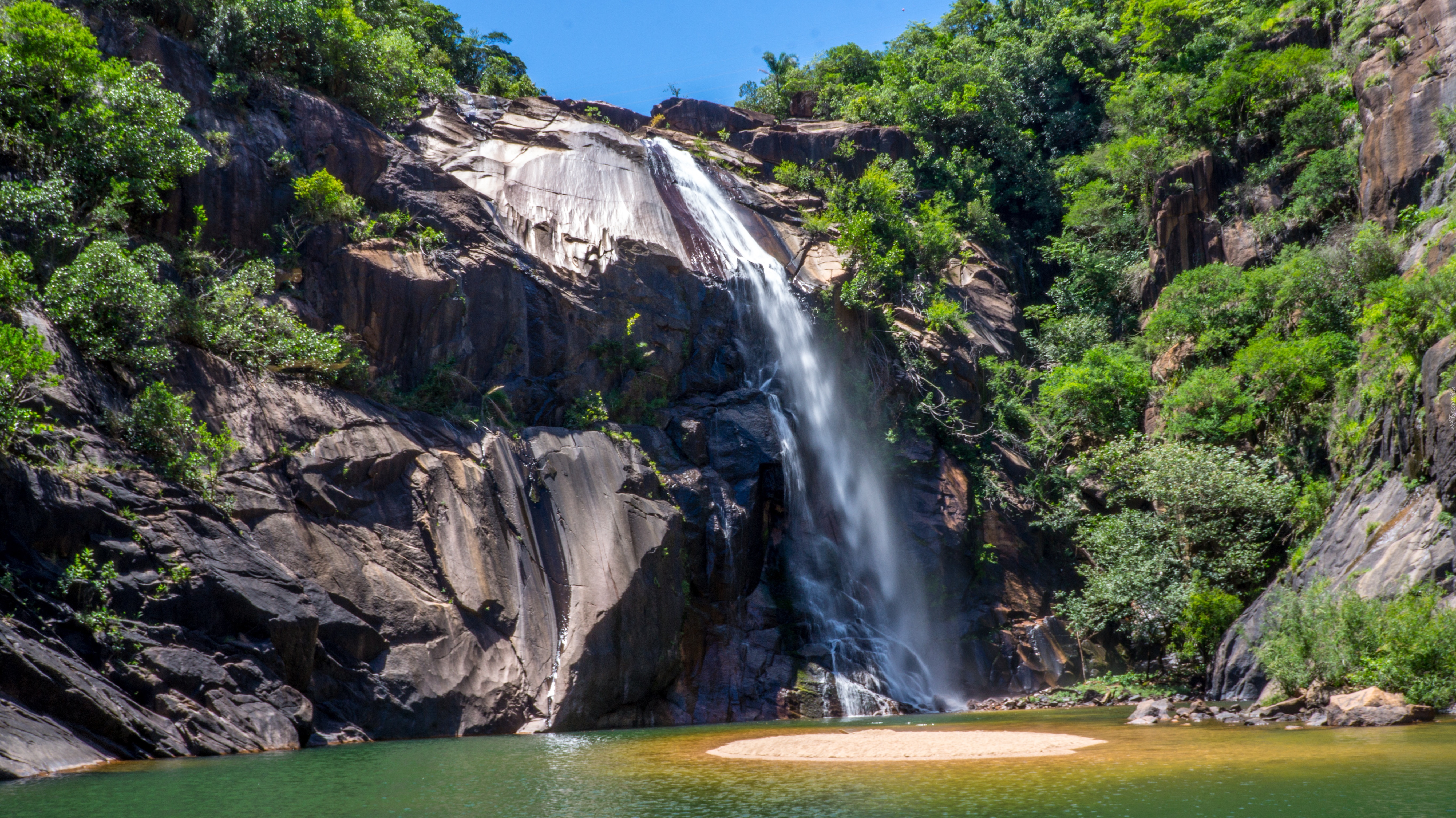 Edytor tapety: Wodospad spływający po skale