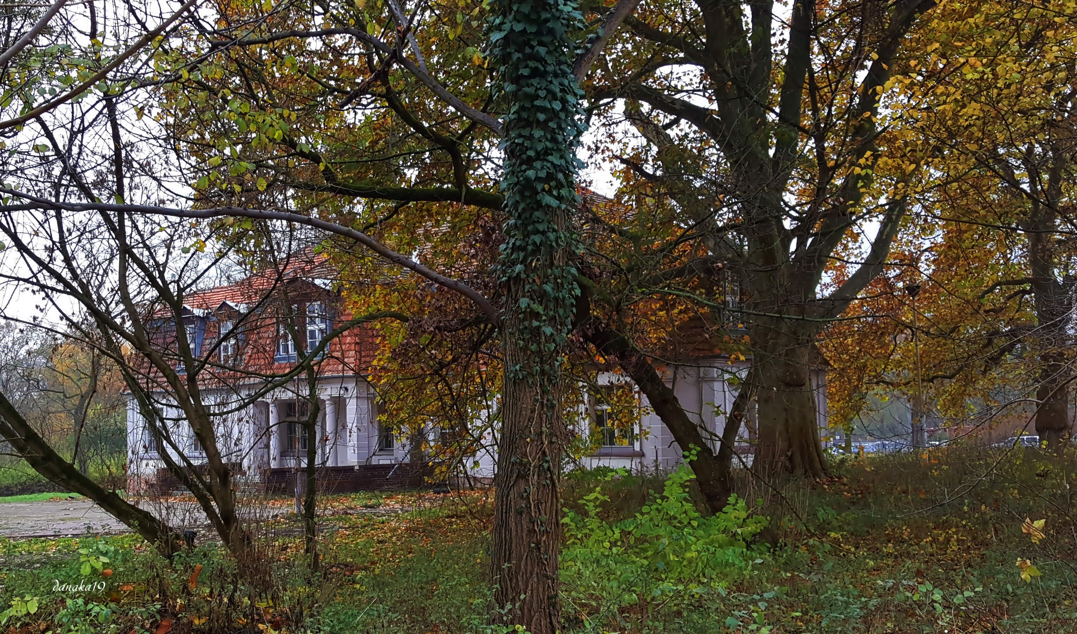 Edytor tapety: Odrestaurowany dworek w jesiennym parku