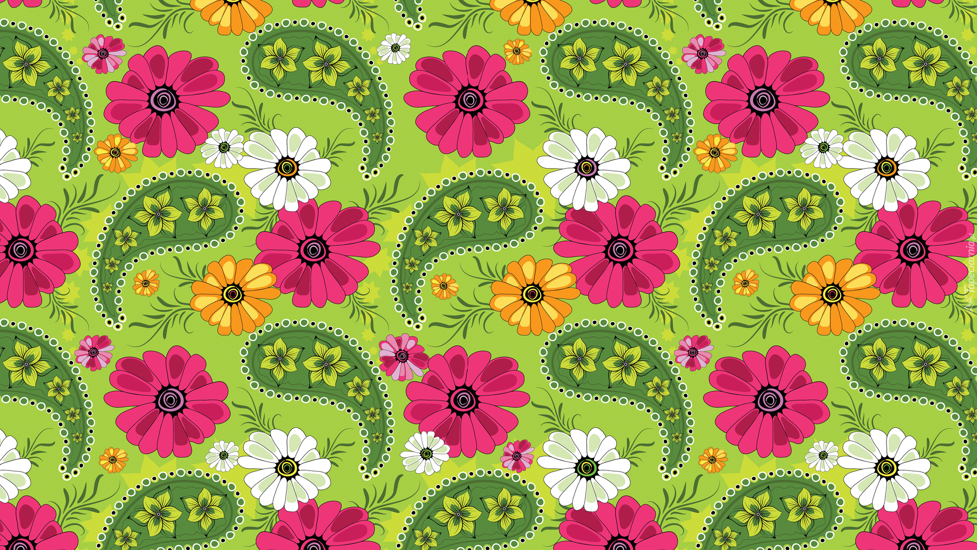 Edytor tapety: Kolorowe kwiatki na zielonym tle