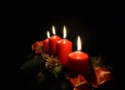 Edytor tapety: Adwentowy stroik z czerwonymi świecami
