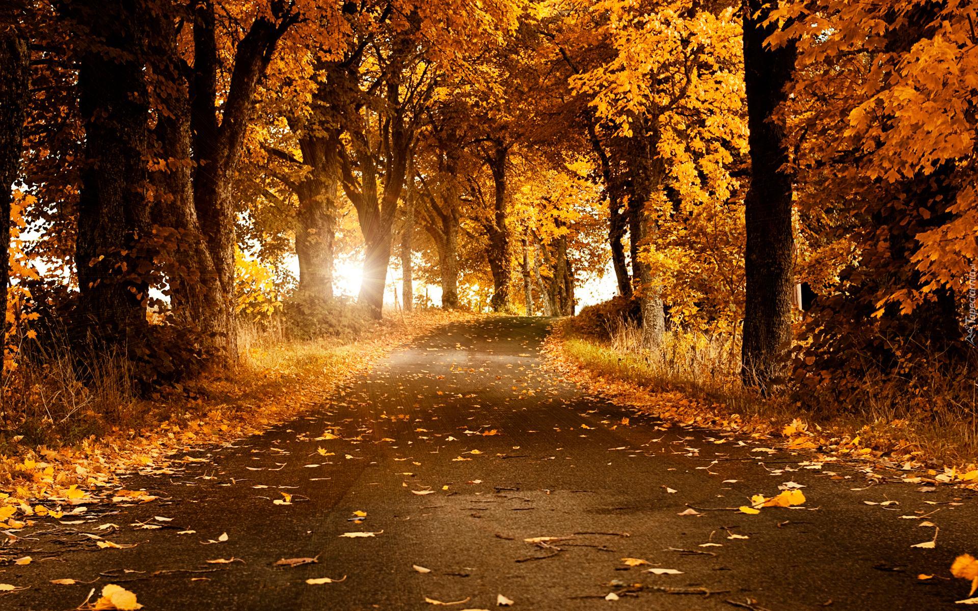 Edytor tapety: Jesienna leśna droga w delikatnym świetle