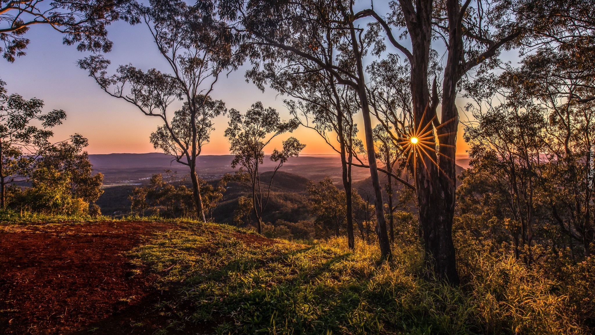 Edytor tapety: Zadrzewione wzgórze w zachodzącym słońcu