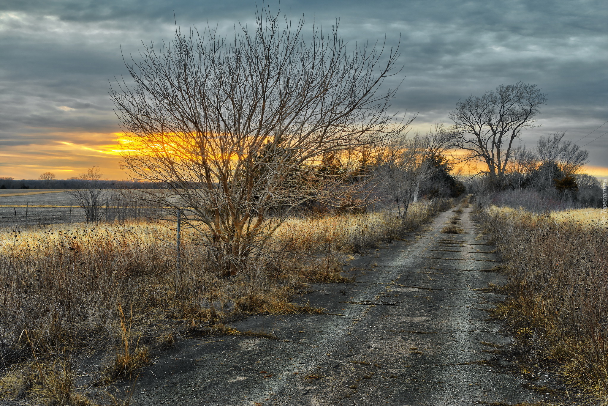 Edytor tapety: Polna droga wśród bezlistnych drzew