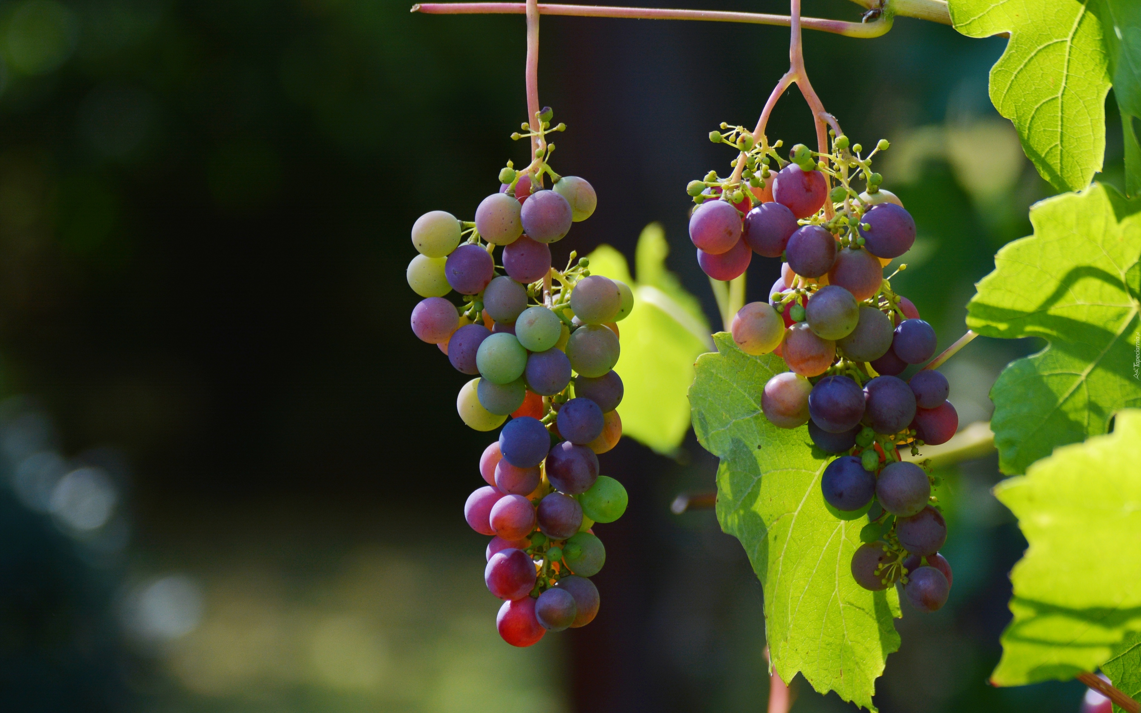 Edytor tapety: Kiście fioletowych winogron w słońcu