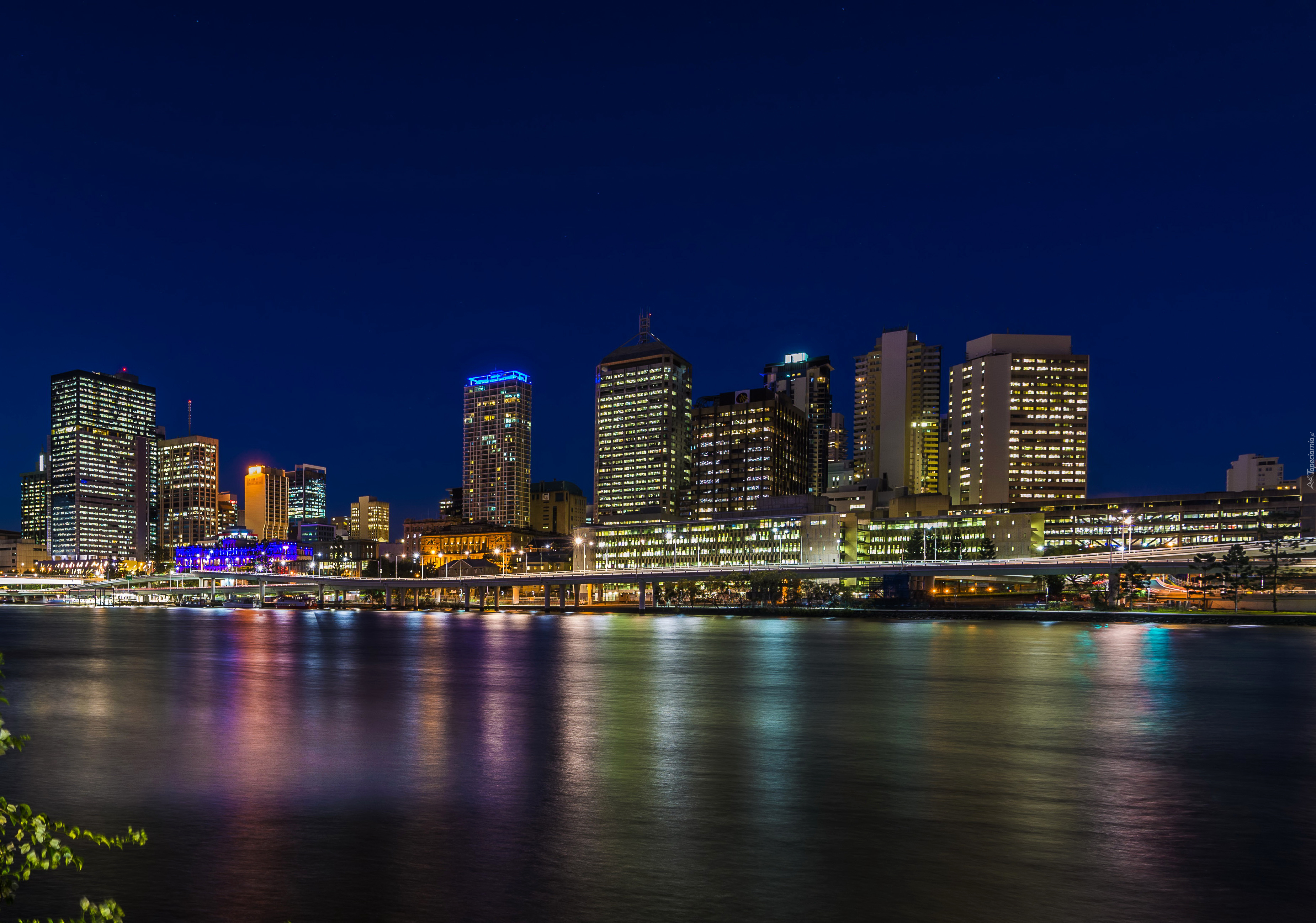 Edytor tapety: Brisbane w nocnym oświetlonym krajobrazie