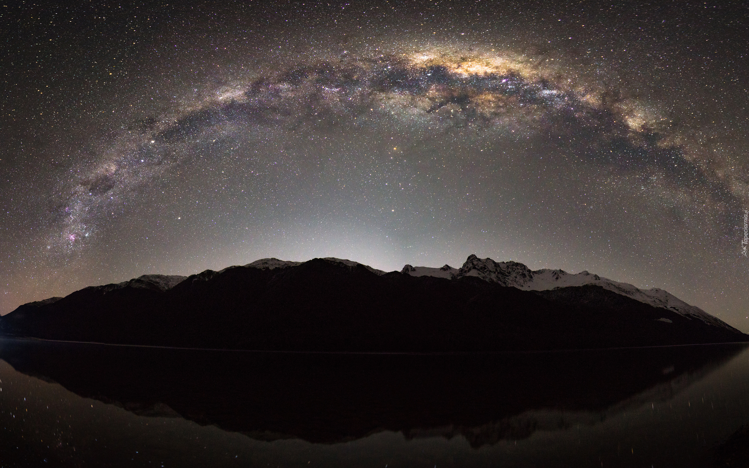 Edytor tapety: Gwieździste niebo odbijające się w wodzie
