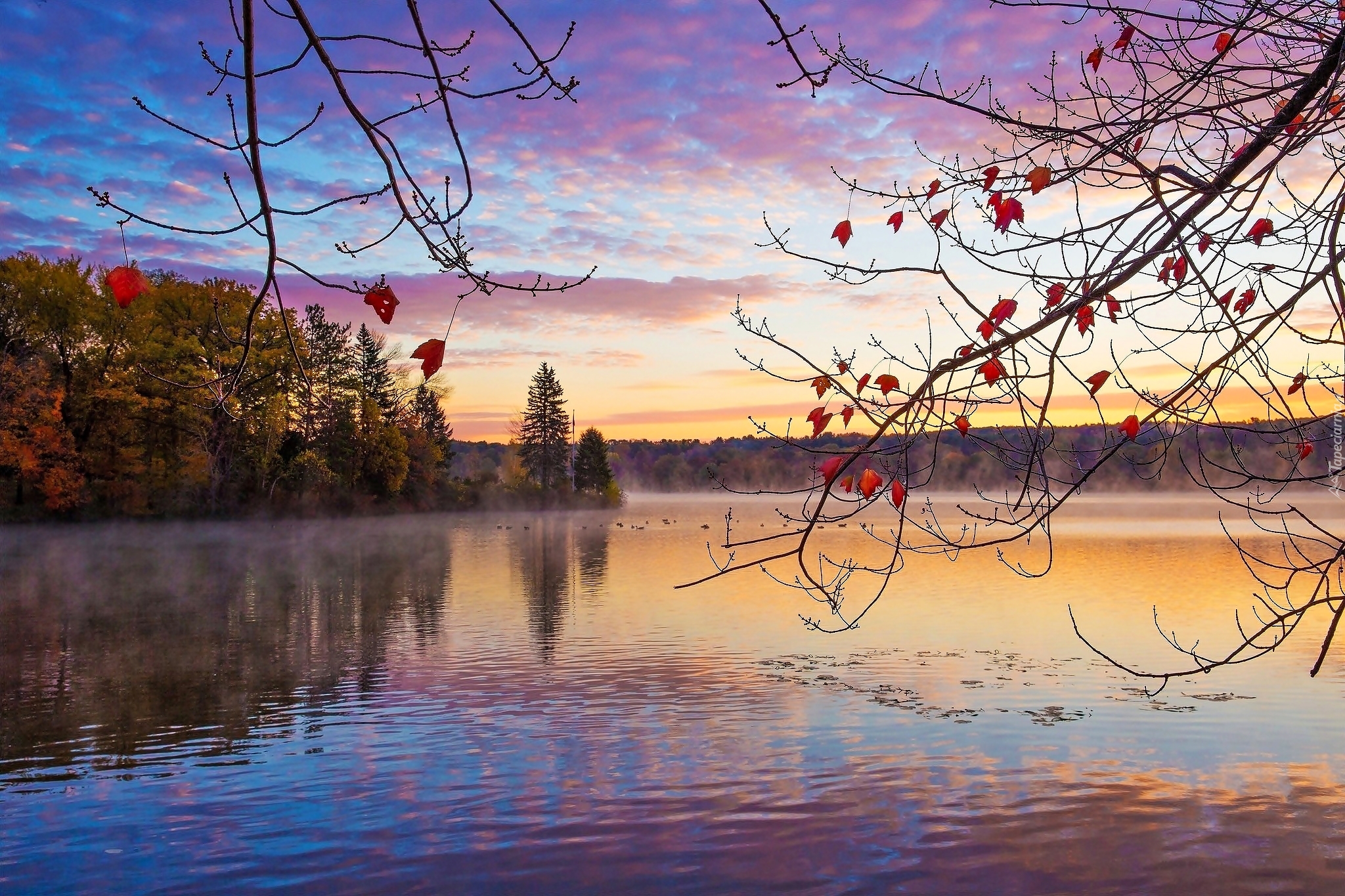 Edytor tapety: Jesienne jezioro we mgle