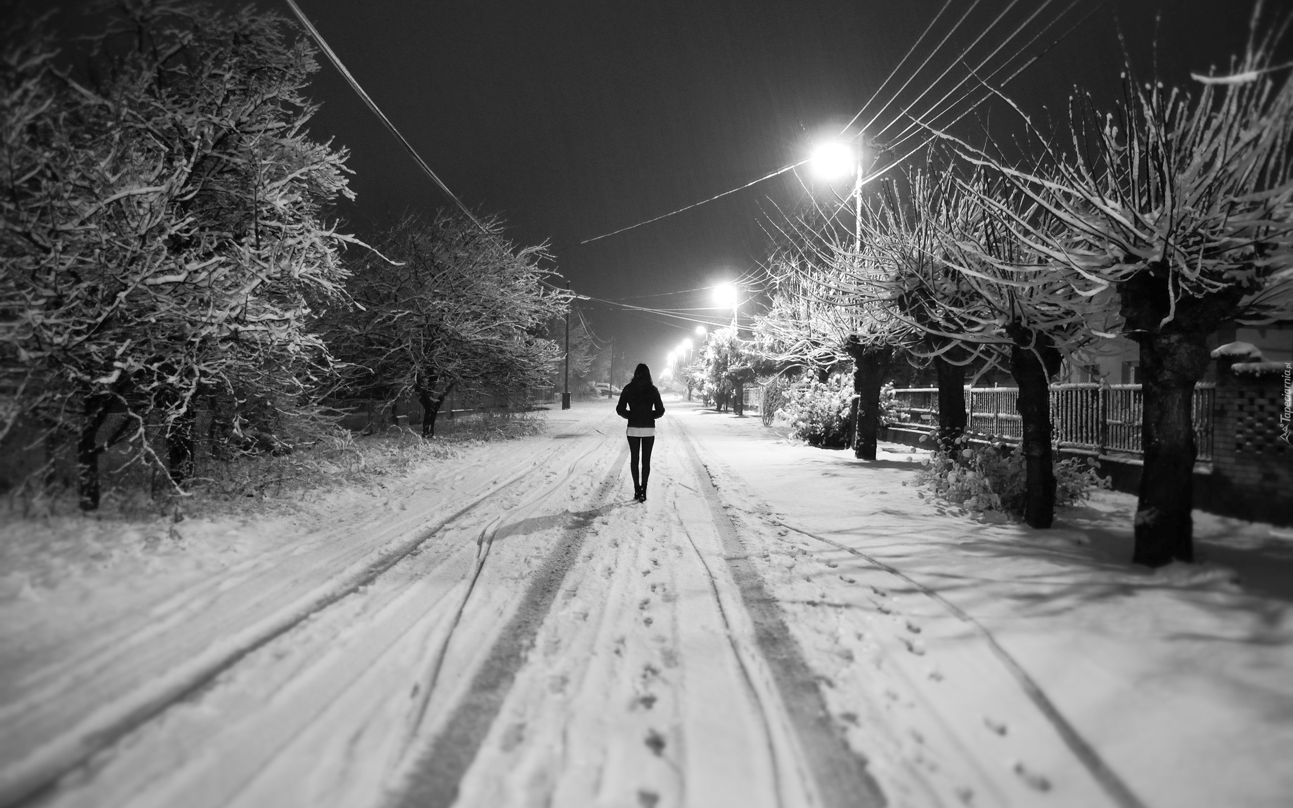 Edytor tapety: Spacerująca dziewczyna w zimową noc