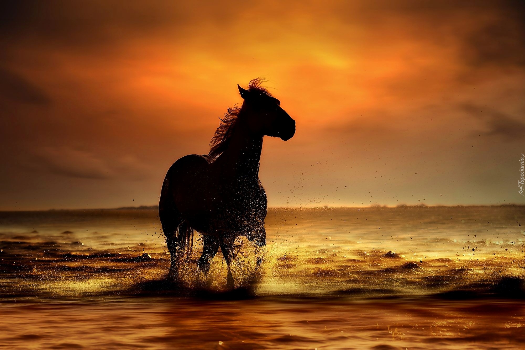 Edytor tapety: Koń w blasku zachodzącego słońca