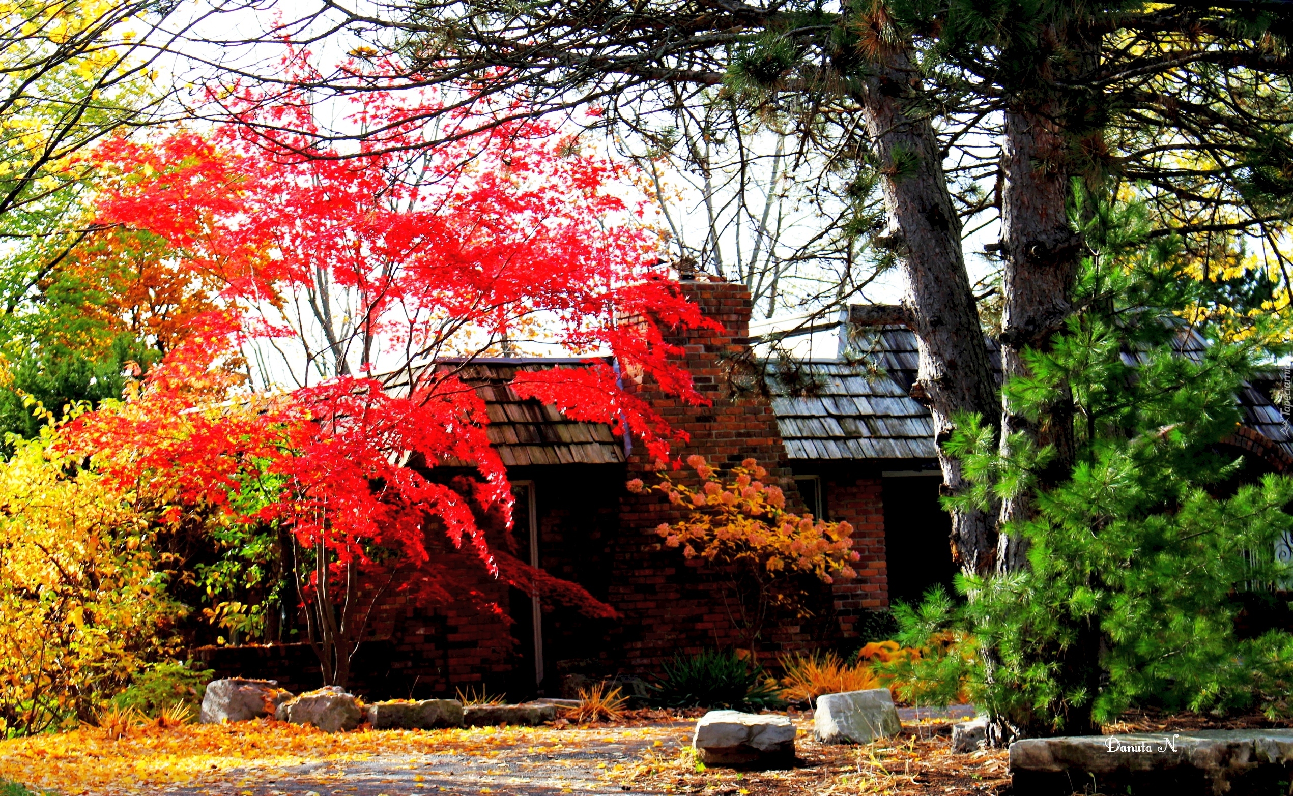 Edytor tapety: Dom wśród jesiennych drzew
