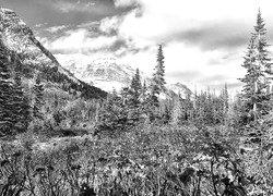 Edytor tapety: Góry w otoczeniu drzew i kwiatów