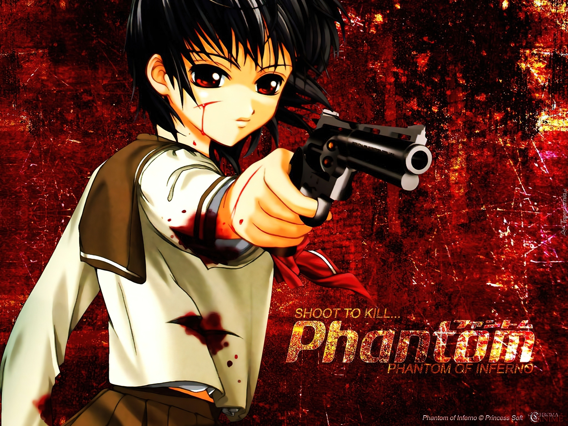 Edytor tapety: Phantom Of Inferno, pistolet, krew, postać