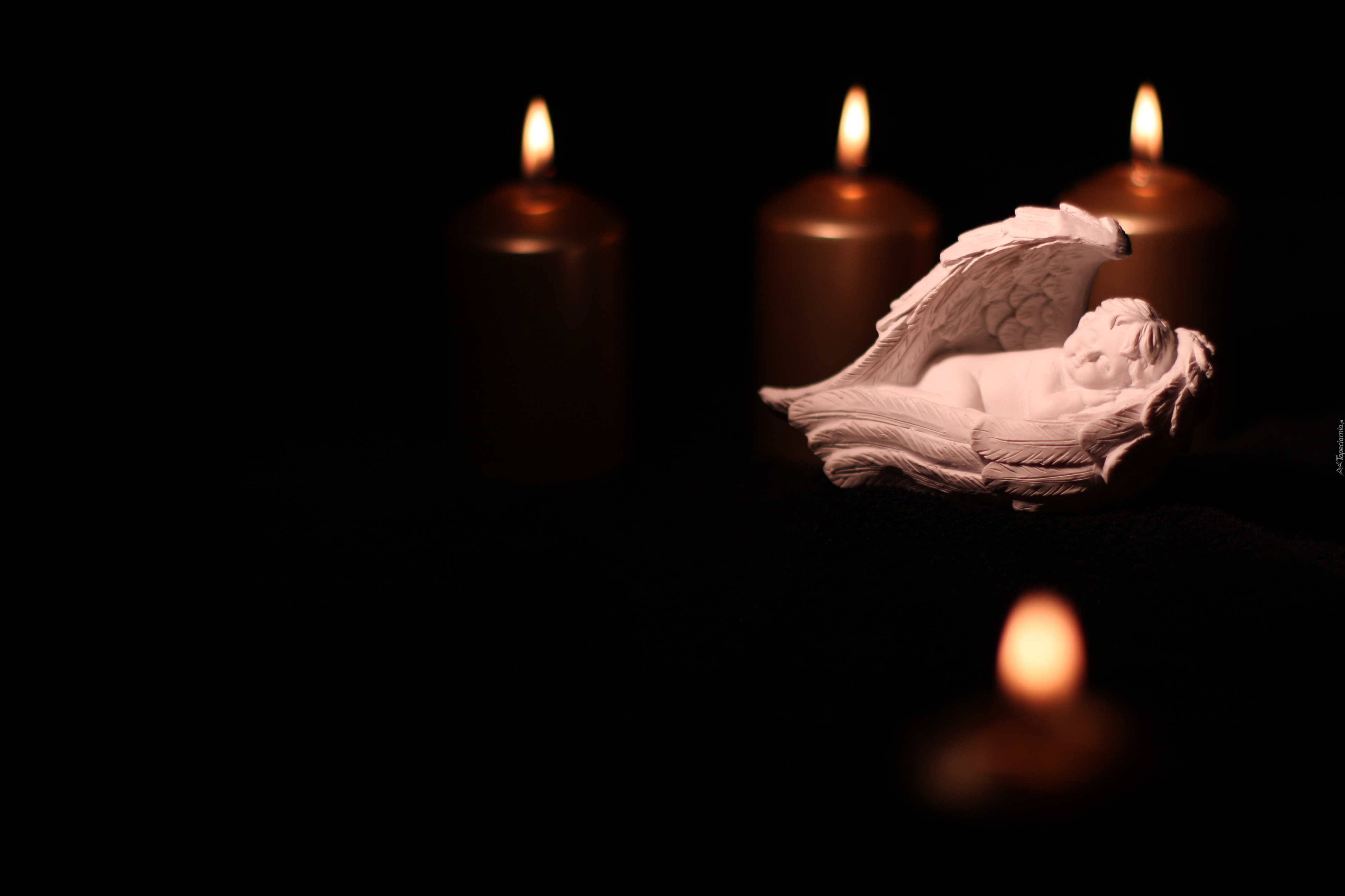 Edytor tapety: Figurka aniołka oświetlona adwentowymi świecami
