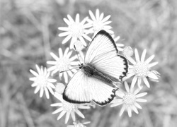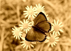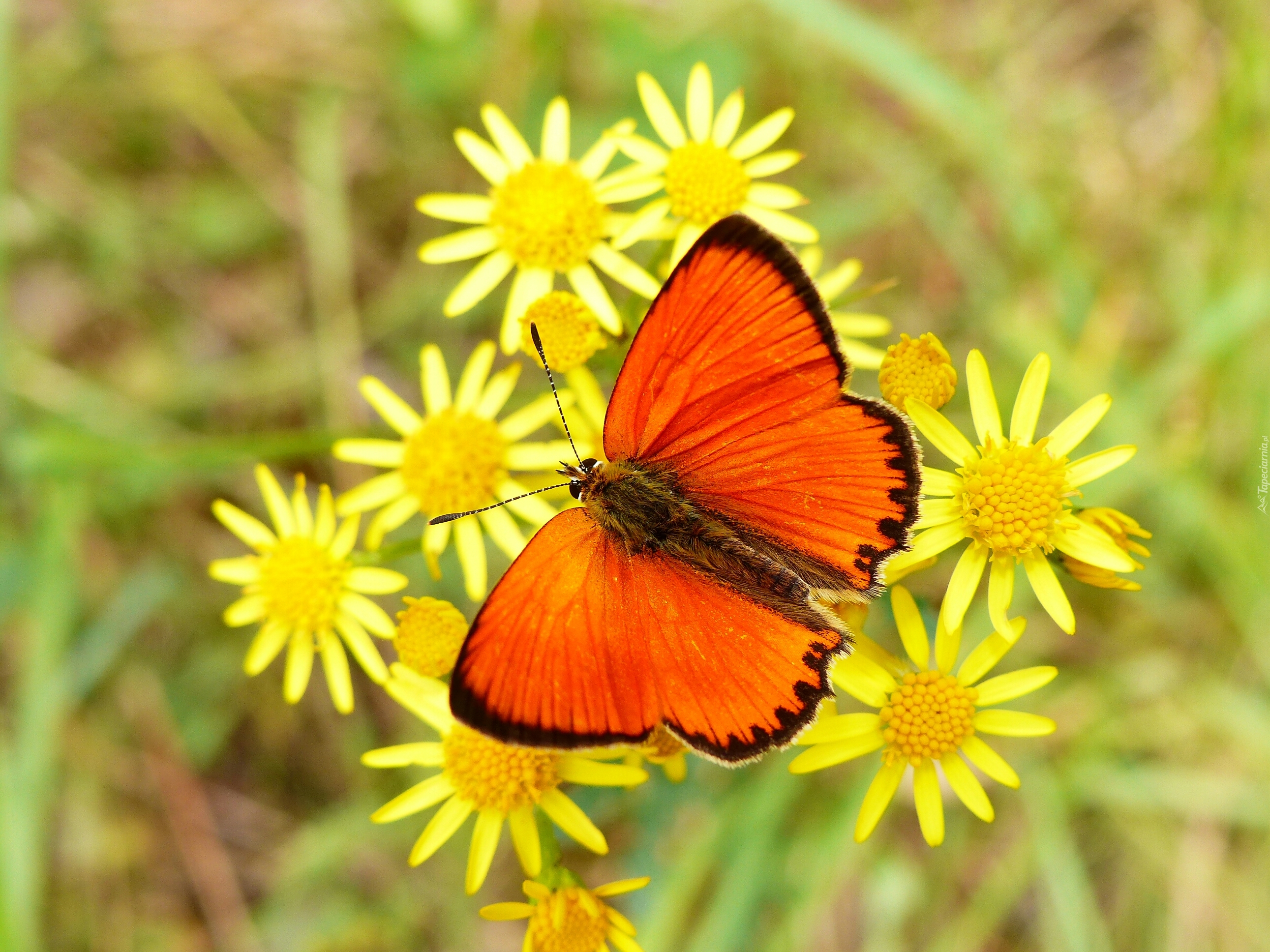 Edytor tapety: Czerwończyk dukacik z modraszkowatych przysiadł na polnych kwiatkach