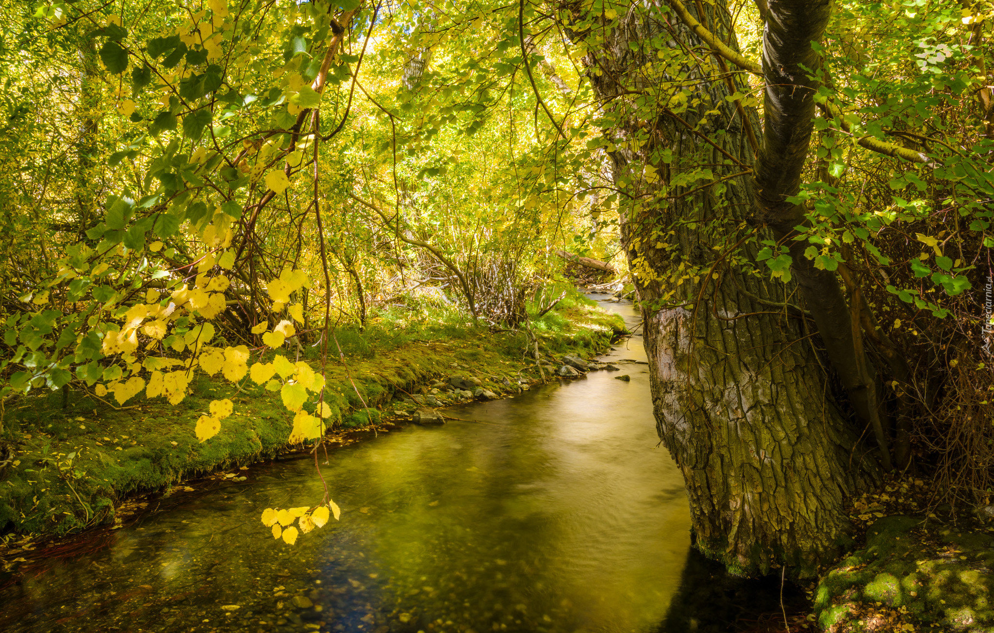 Edytor tapety: Rzeczka w otoczeniu drzew i roślin