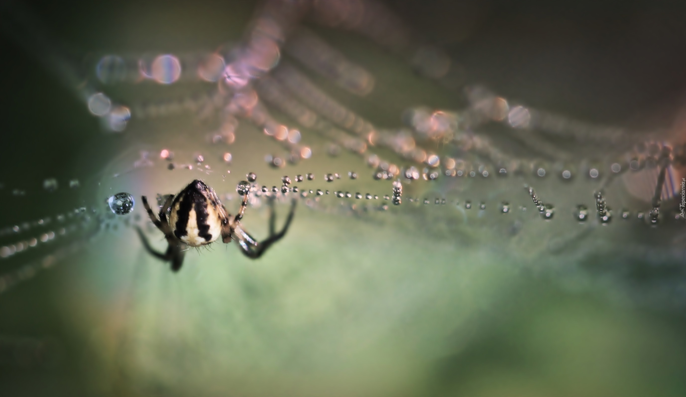 Edytor tapety: Pająk na pajęczynie pokrytej kroplami wody