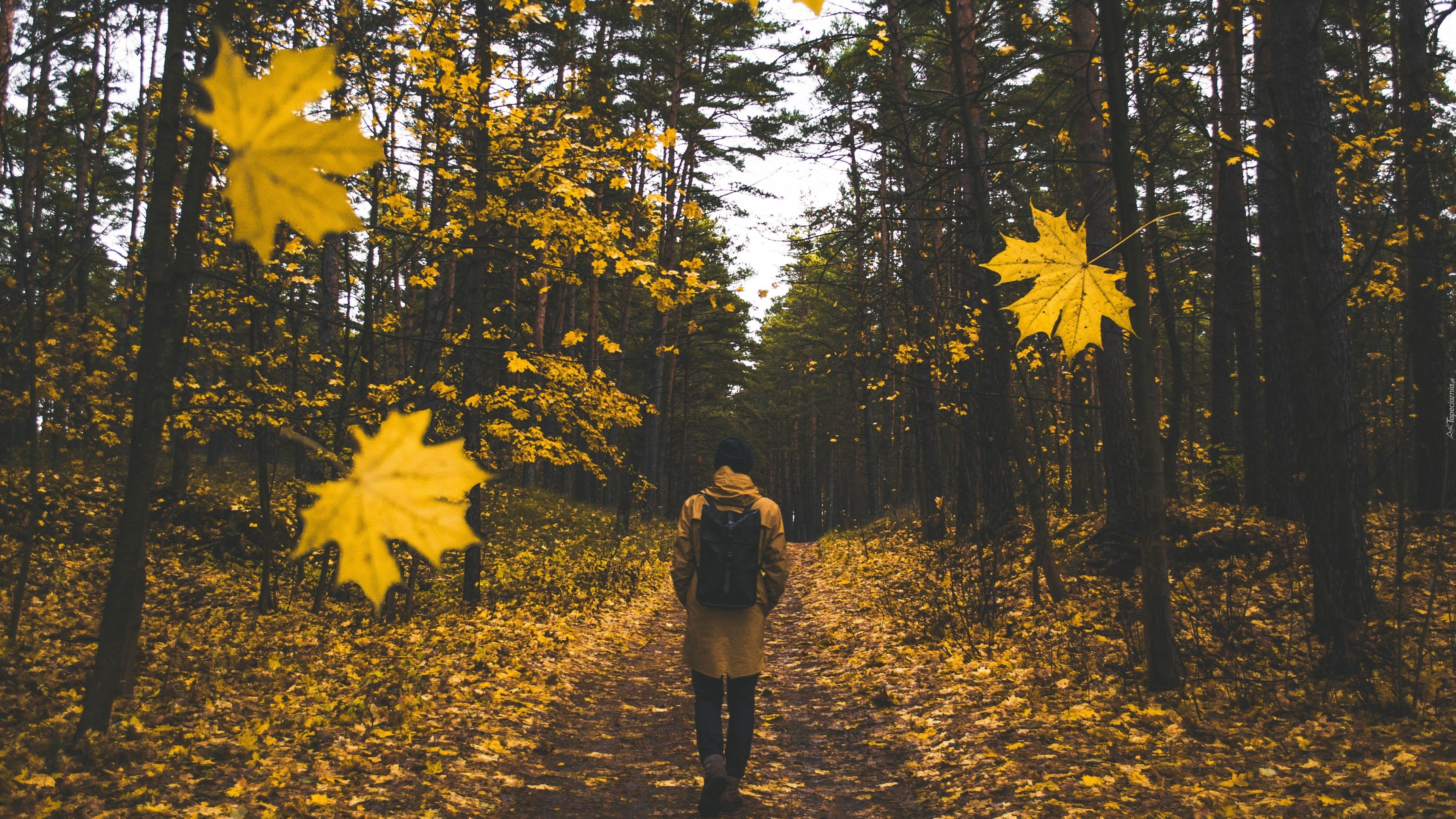 Edytor tapety: Spacer jesienną ścieżką w parku wśród spadających liści