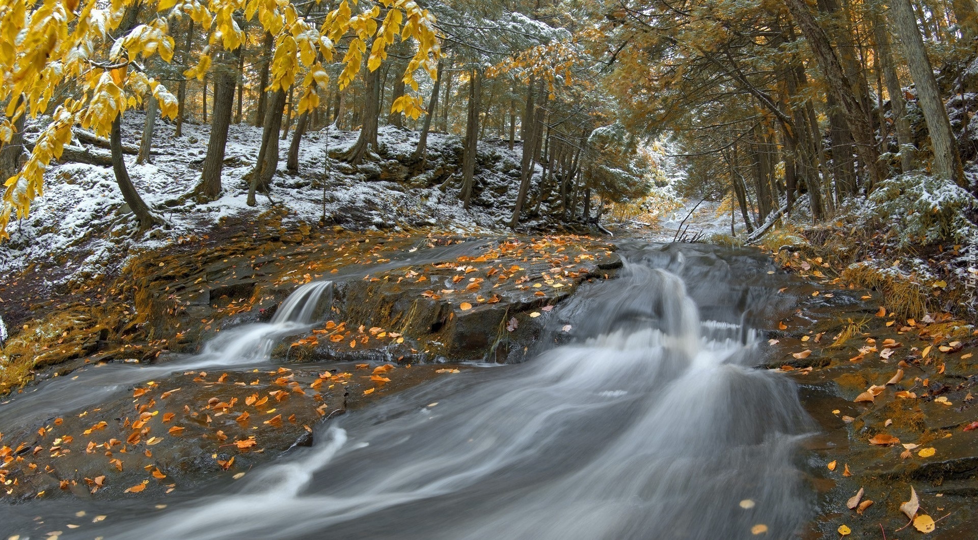 Edytor tapety: Potok porywa jesienne liście