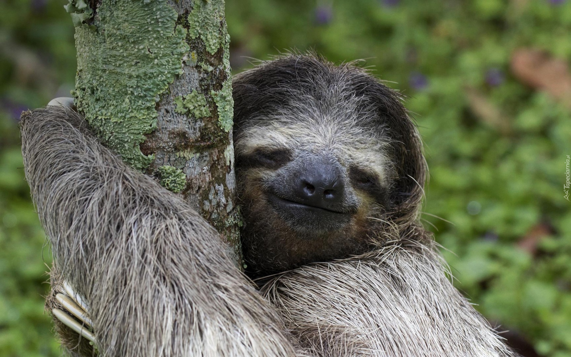 Edytor tapety: Leniwiec przytulony do drzewa