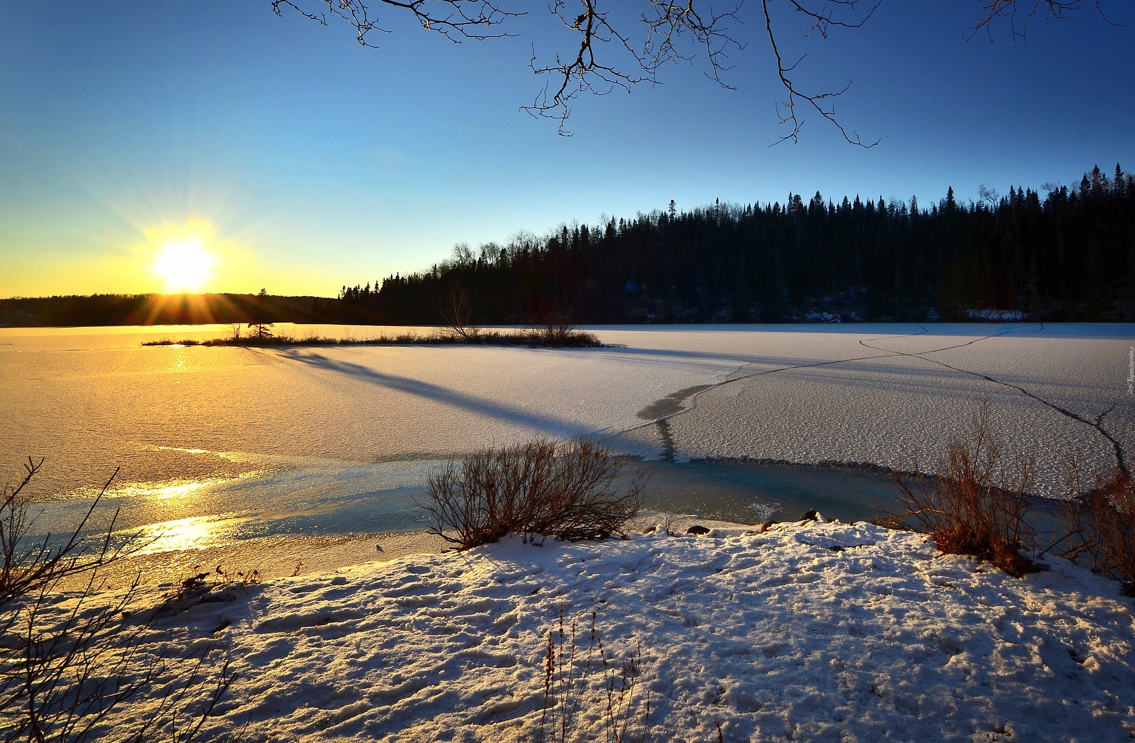 Edytor tapety: Zamarznięte jezioro w zachodzącym słońcu