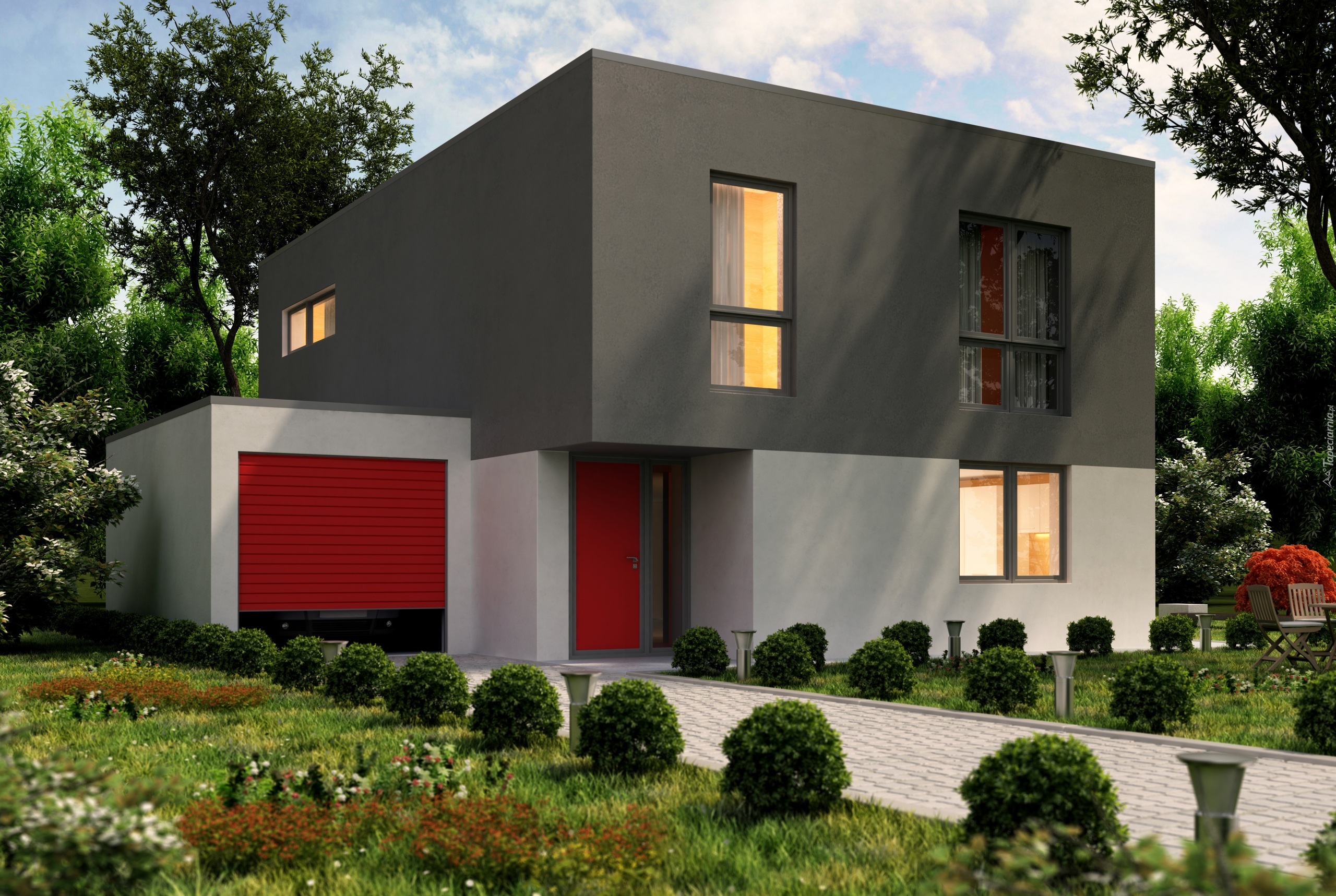 Edytor tapety: Tradycyjny dom o zwartej bryle