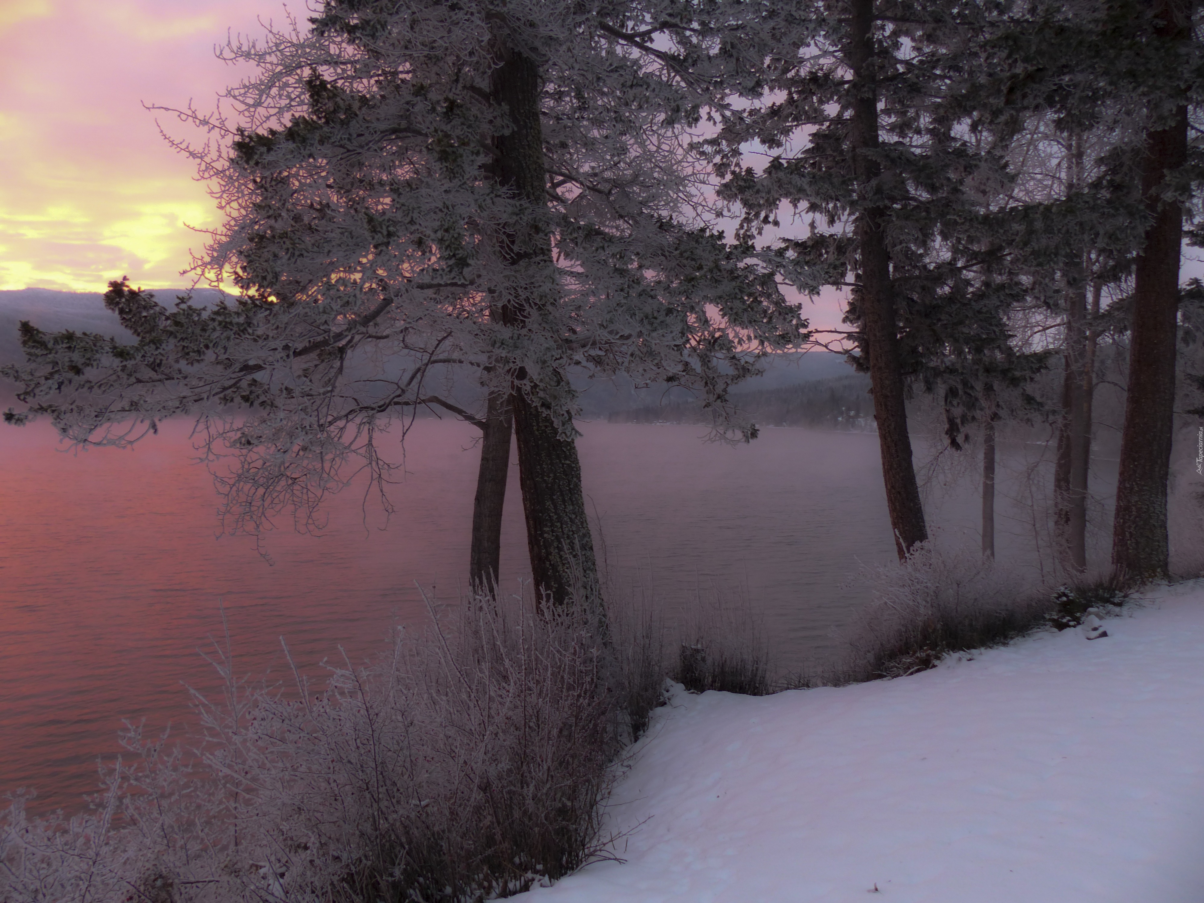 Edytor tapety: Zimowe słońce nad jeziorem