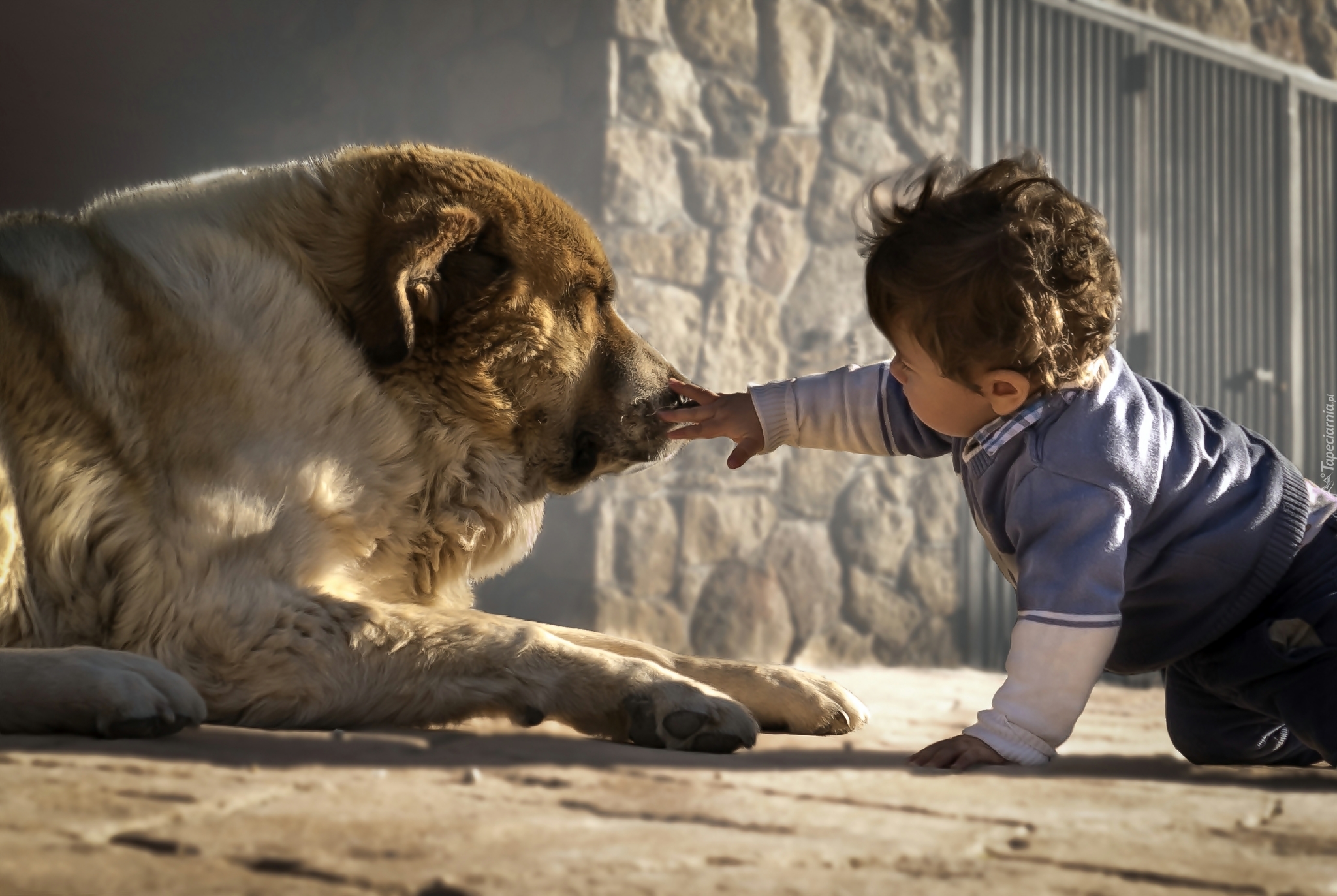 Edytor tapety: Owczarek środkowoazjatycki i mały chłopczyk