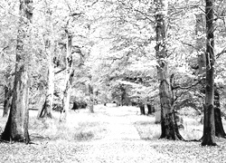 Edytor tapety: Droga w lesie pośród jesiennych drzew