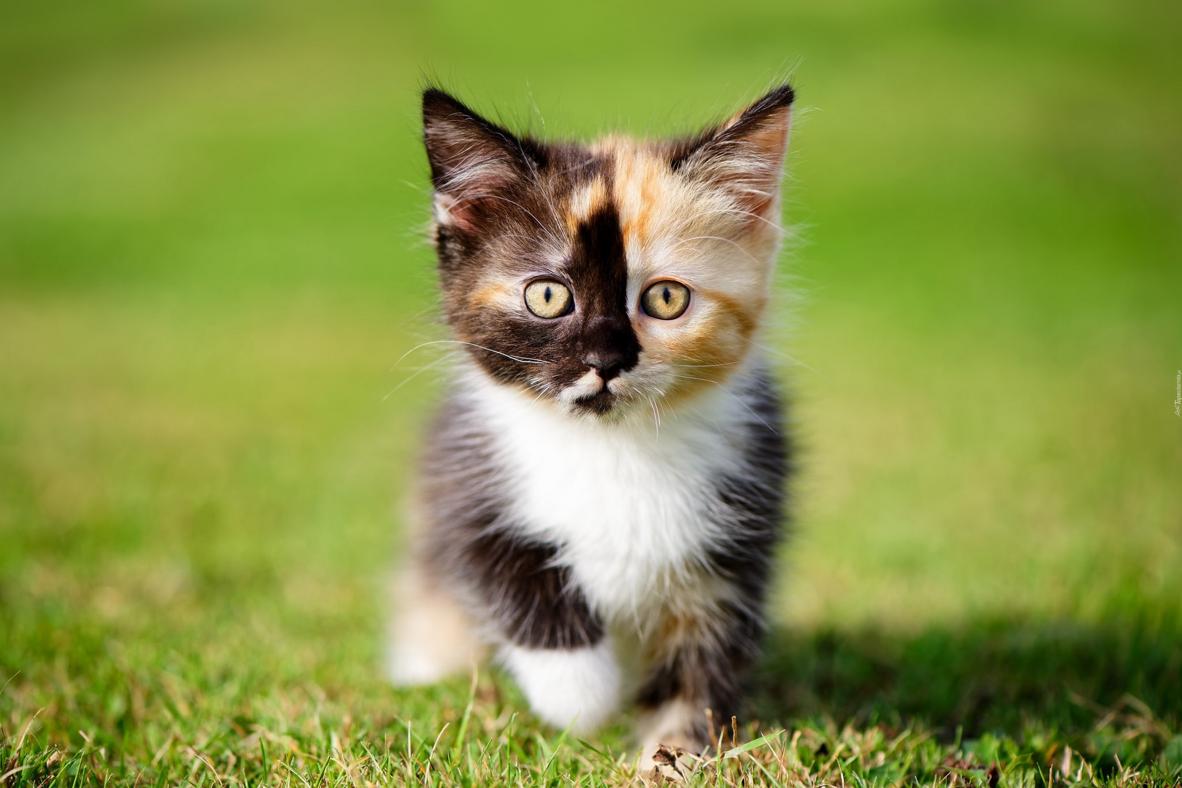 Edytor tapety: Mały kotek maine coon siedzący na trawie
