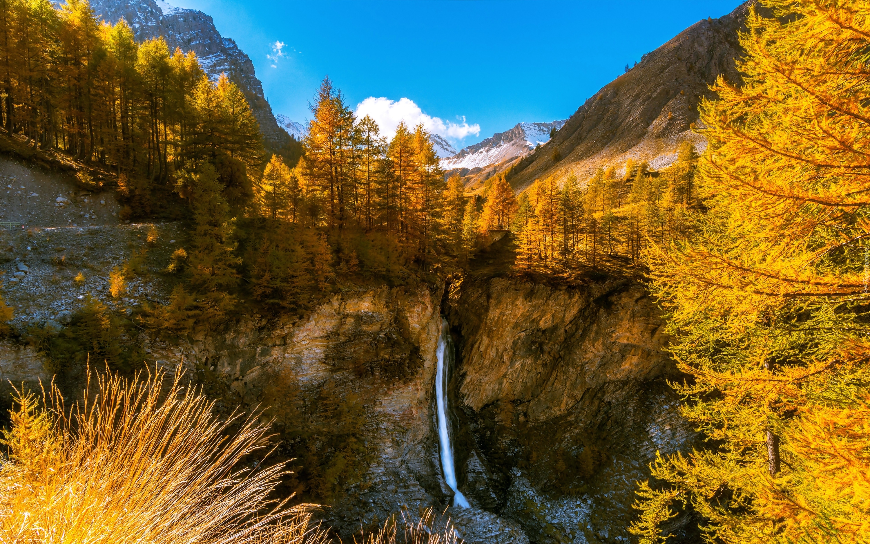 Edytor tapety: Górski wodospad jesienią