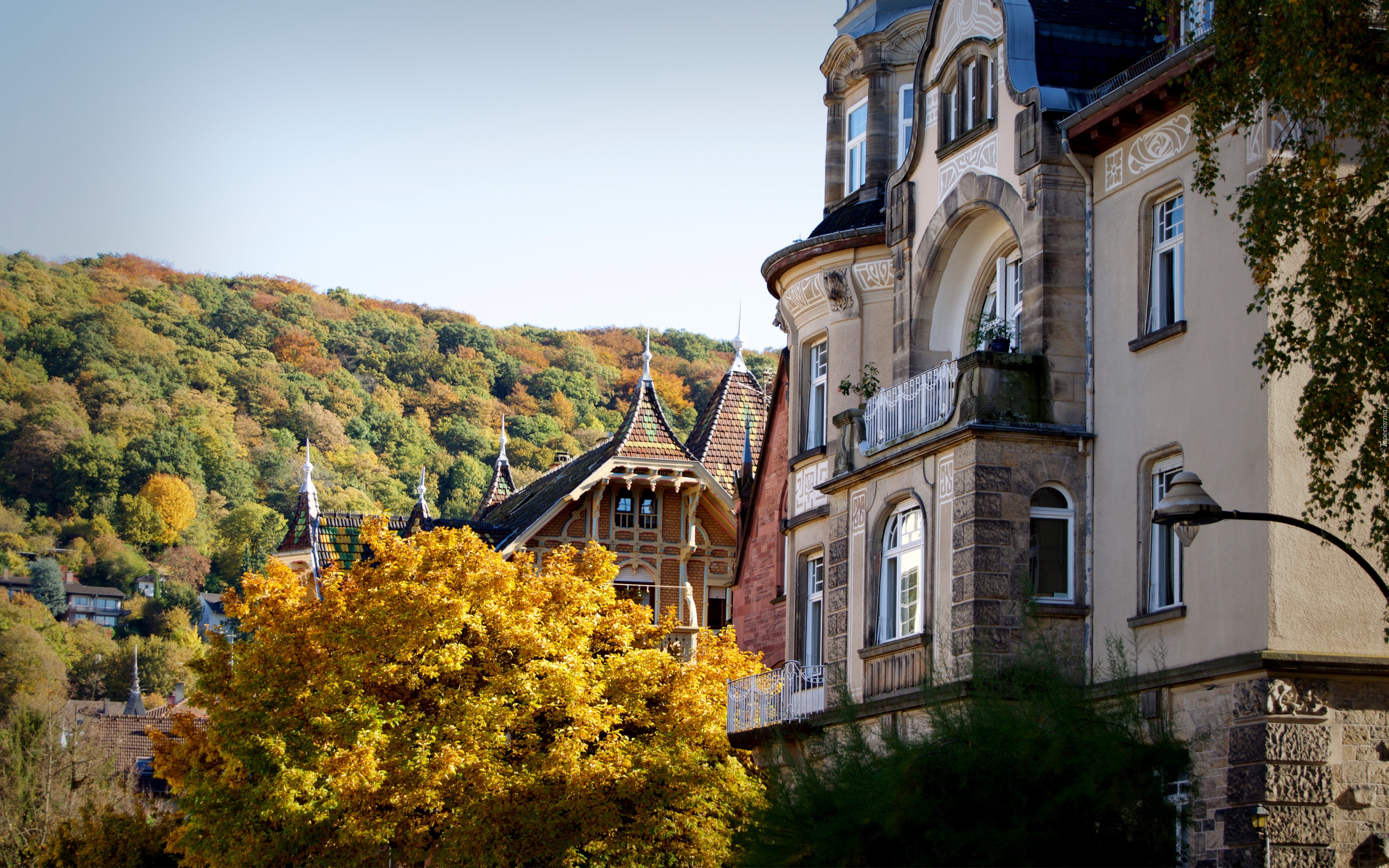 Edytor tapety: Domy w Heidelbergu w krajobrazie jesiennym