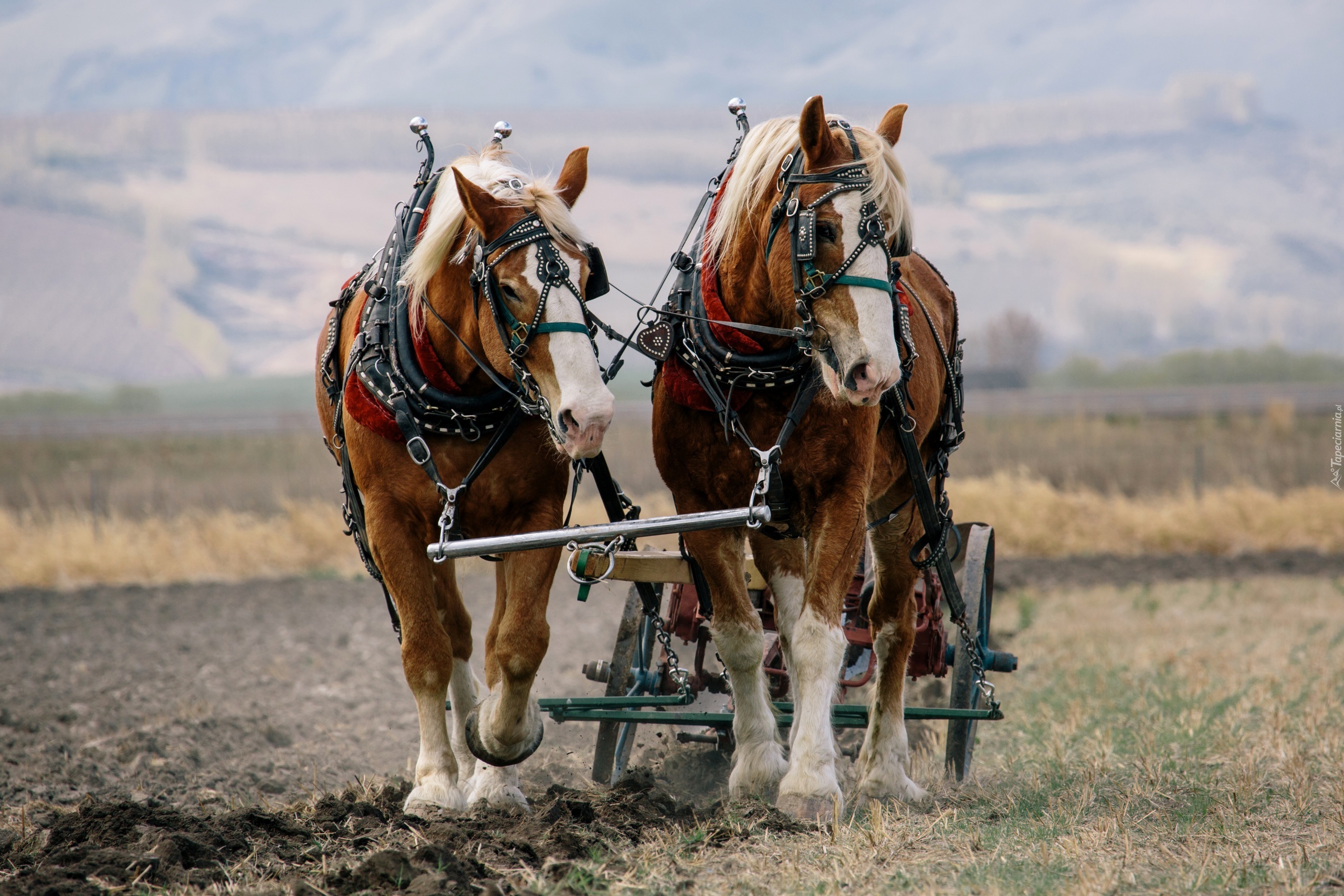 Edytor tapety: Konie podczas pracy w polu