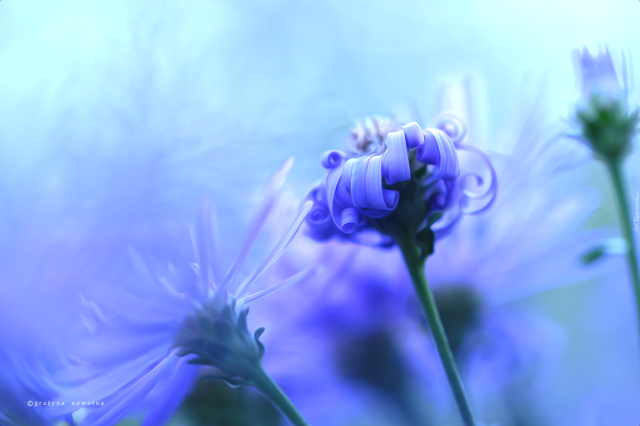 Edytor tapety: Zakręcone płatki niebieskich astrów