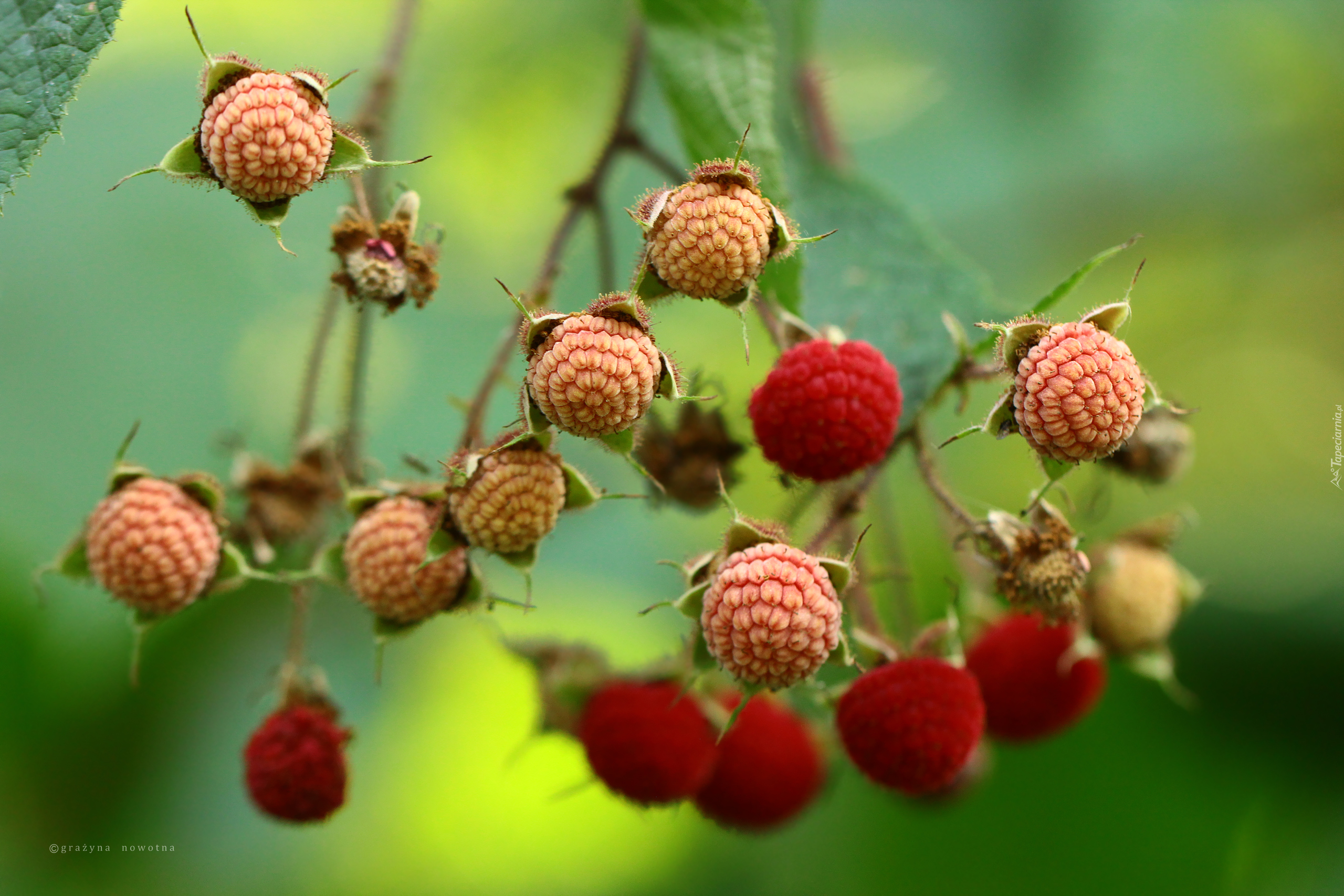 Edytor tapety: Maliny dojrzewające na gałązce