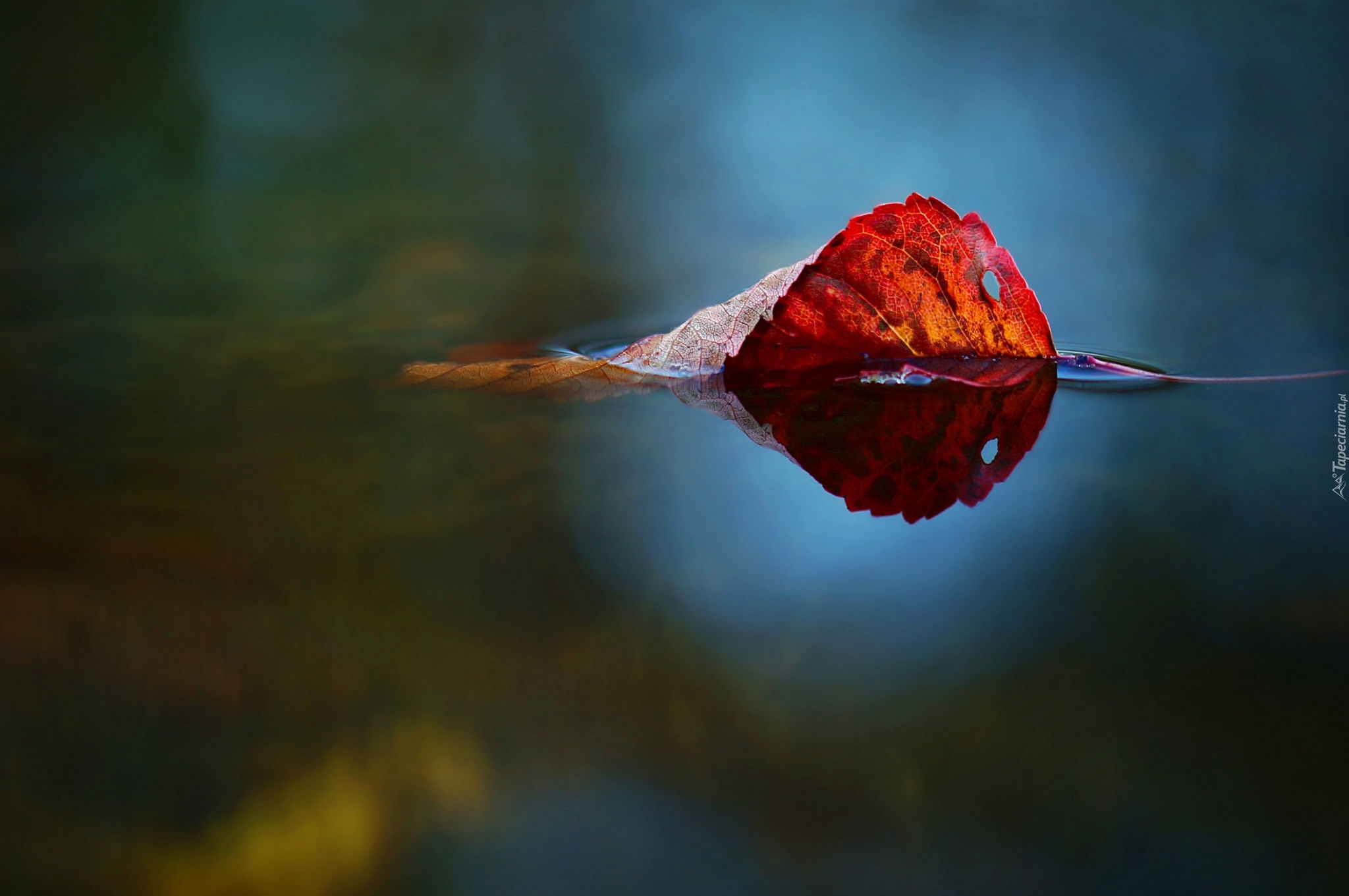 Edytor tapety: Odbicie jesiennego liścia w wodzie