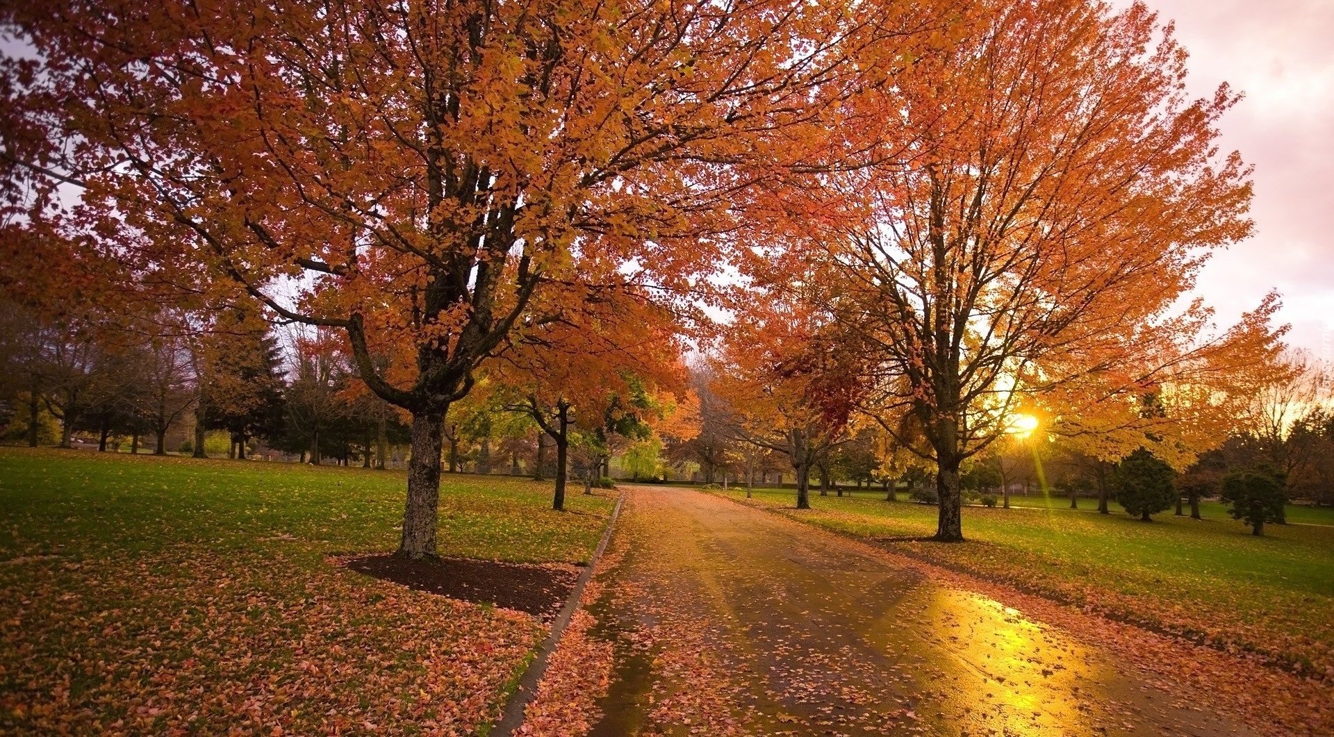 Edytor tapety: Do jesiennego parku zaglądają promienie słońca