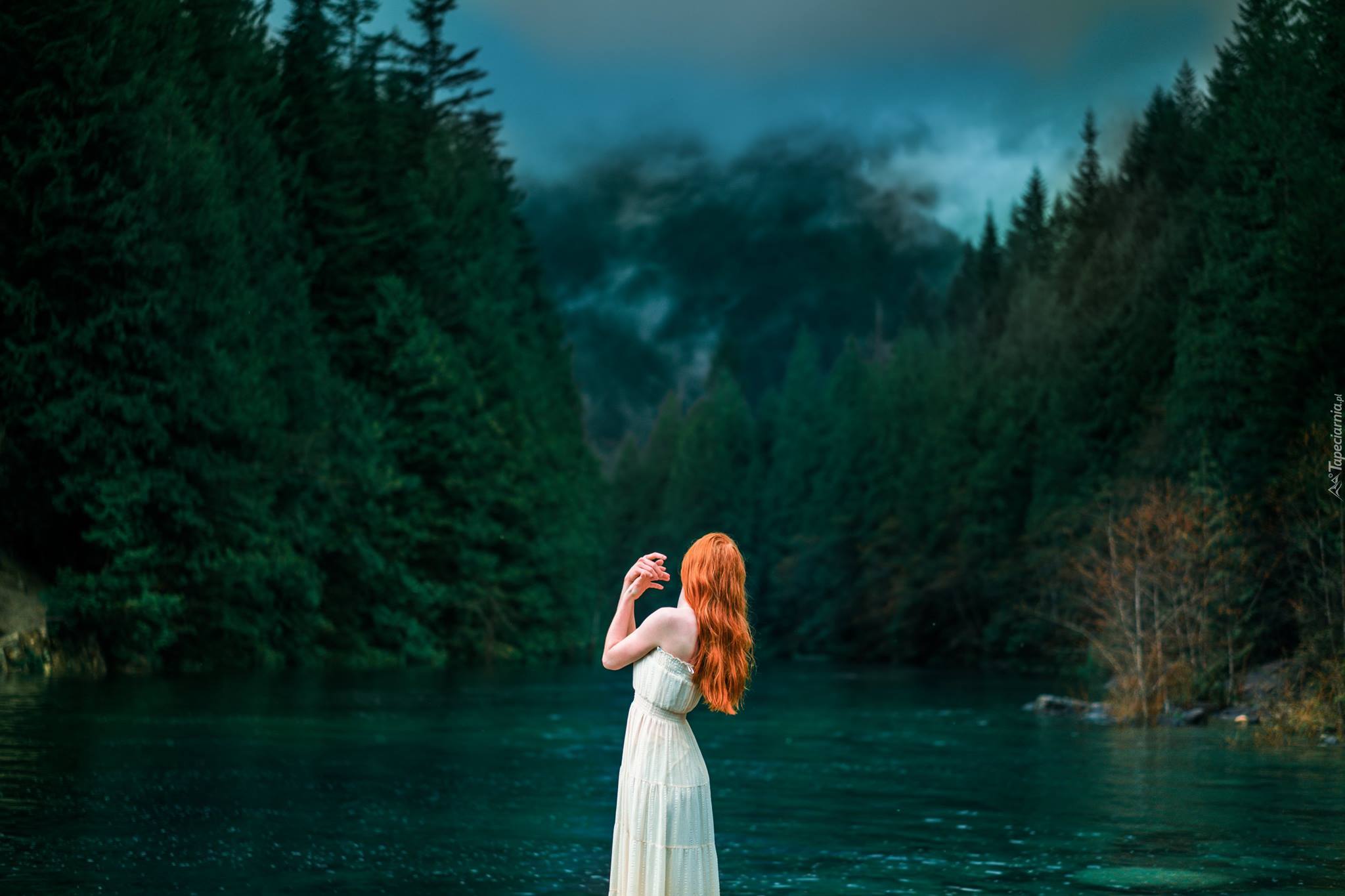 Edytor tapety: Kobieta nad rzeką spoglądająca na las