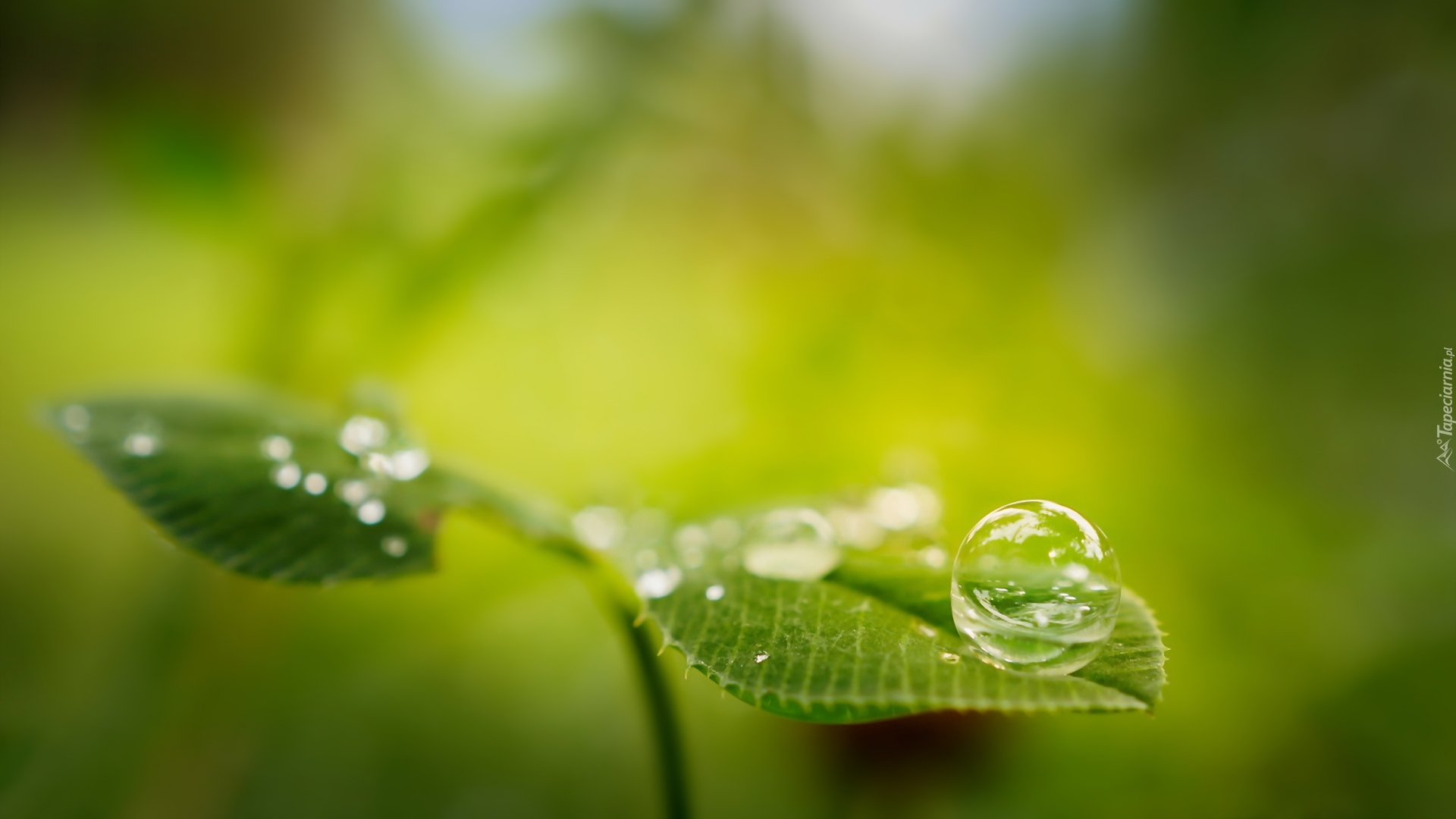 Edytor tapety: Ważą się losy kropelki na liściu
