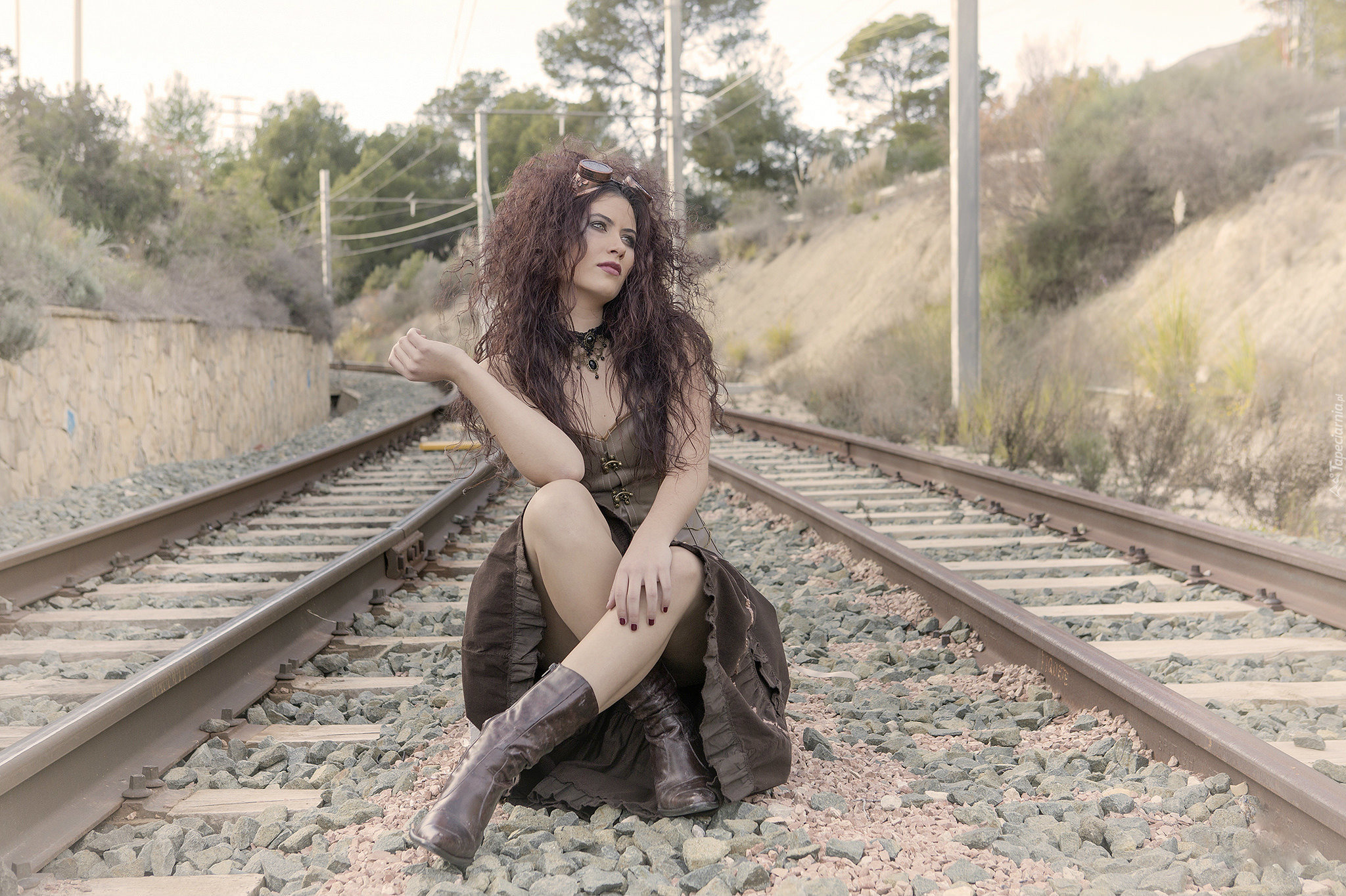 Edytor tapety: Kobieta pozująca na torach kolejowych