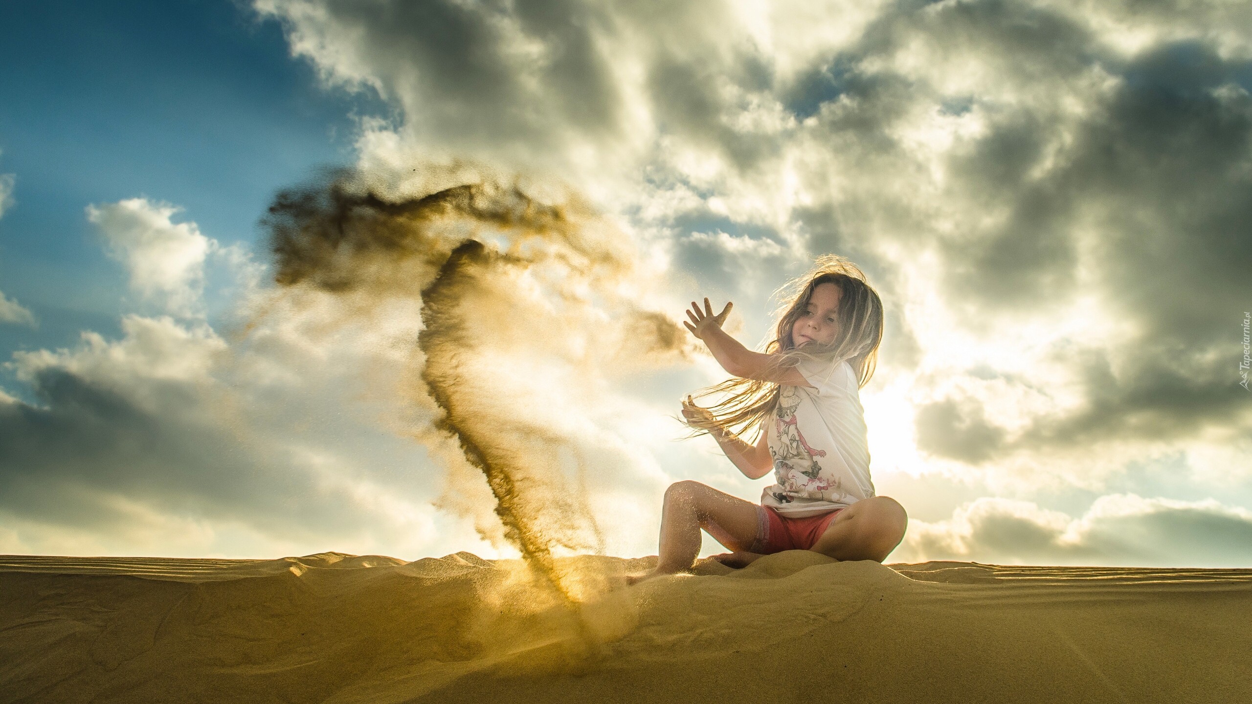 Edytor tapety: Dziewczynka bawiąca się piaskiem
