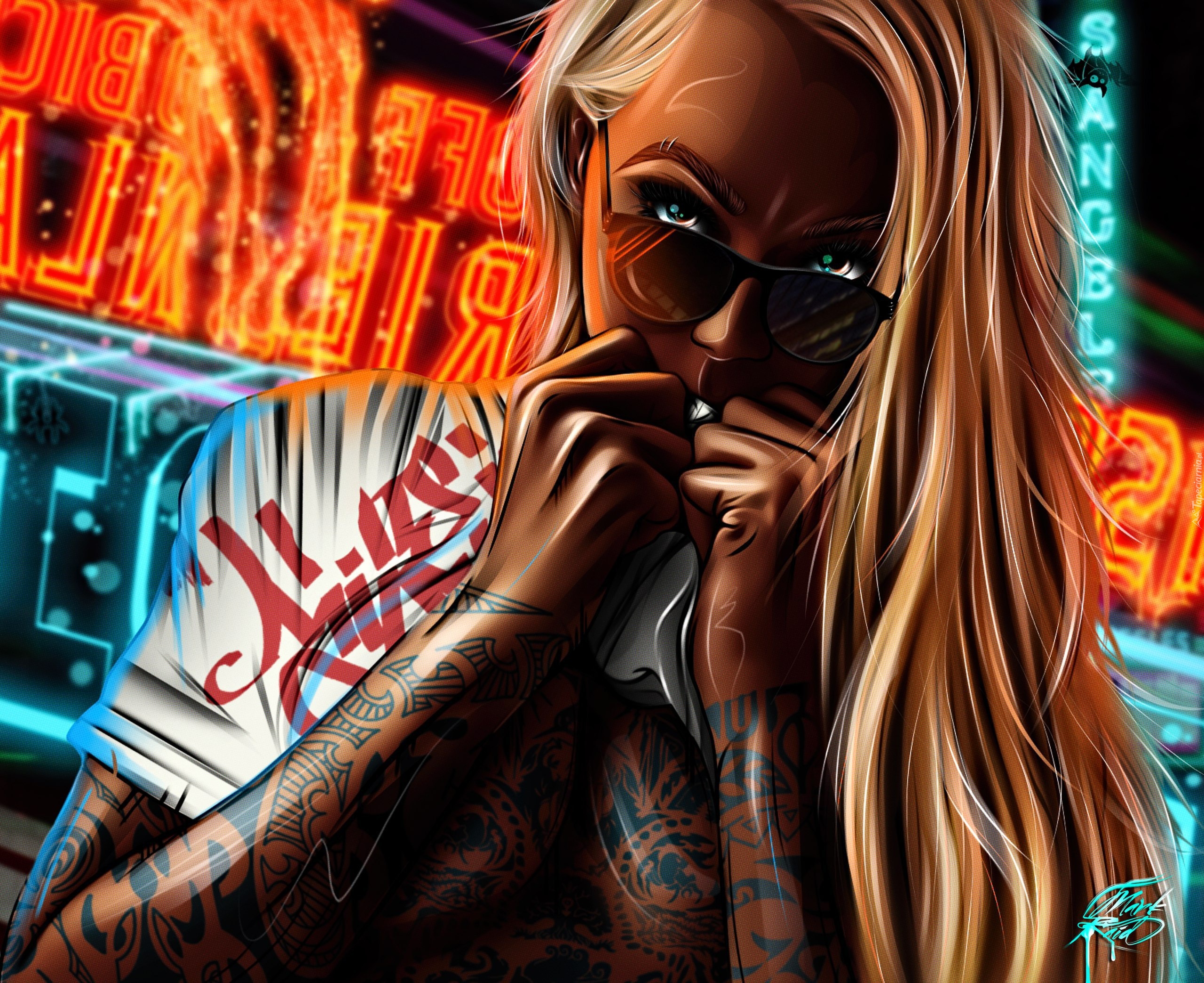 Edytor tapety: Graficzna dziewczyna w okularach i z tatuażem