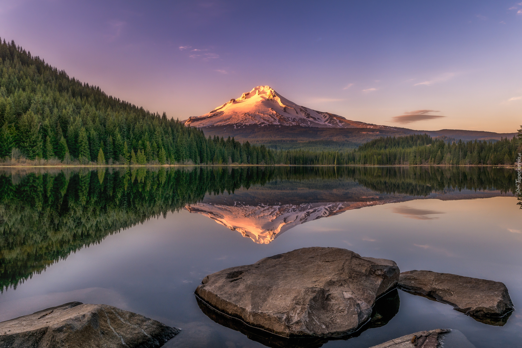 Edytor tapety: Przybrzeżne kamienie nad górskim jeziorem