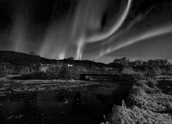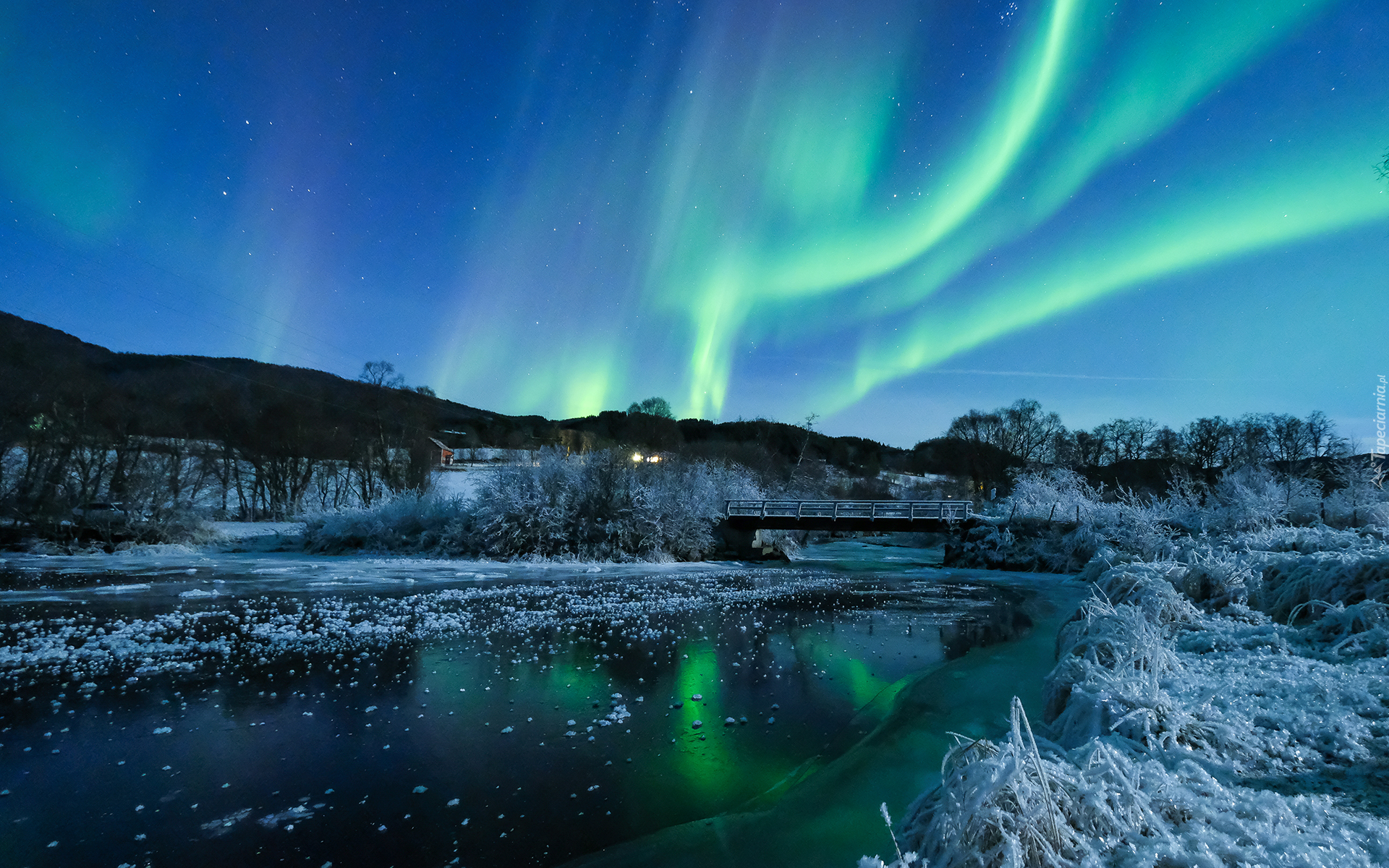 Edytor tapety: Smugi zorzy polarnej nad wzgórzami