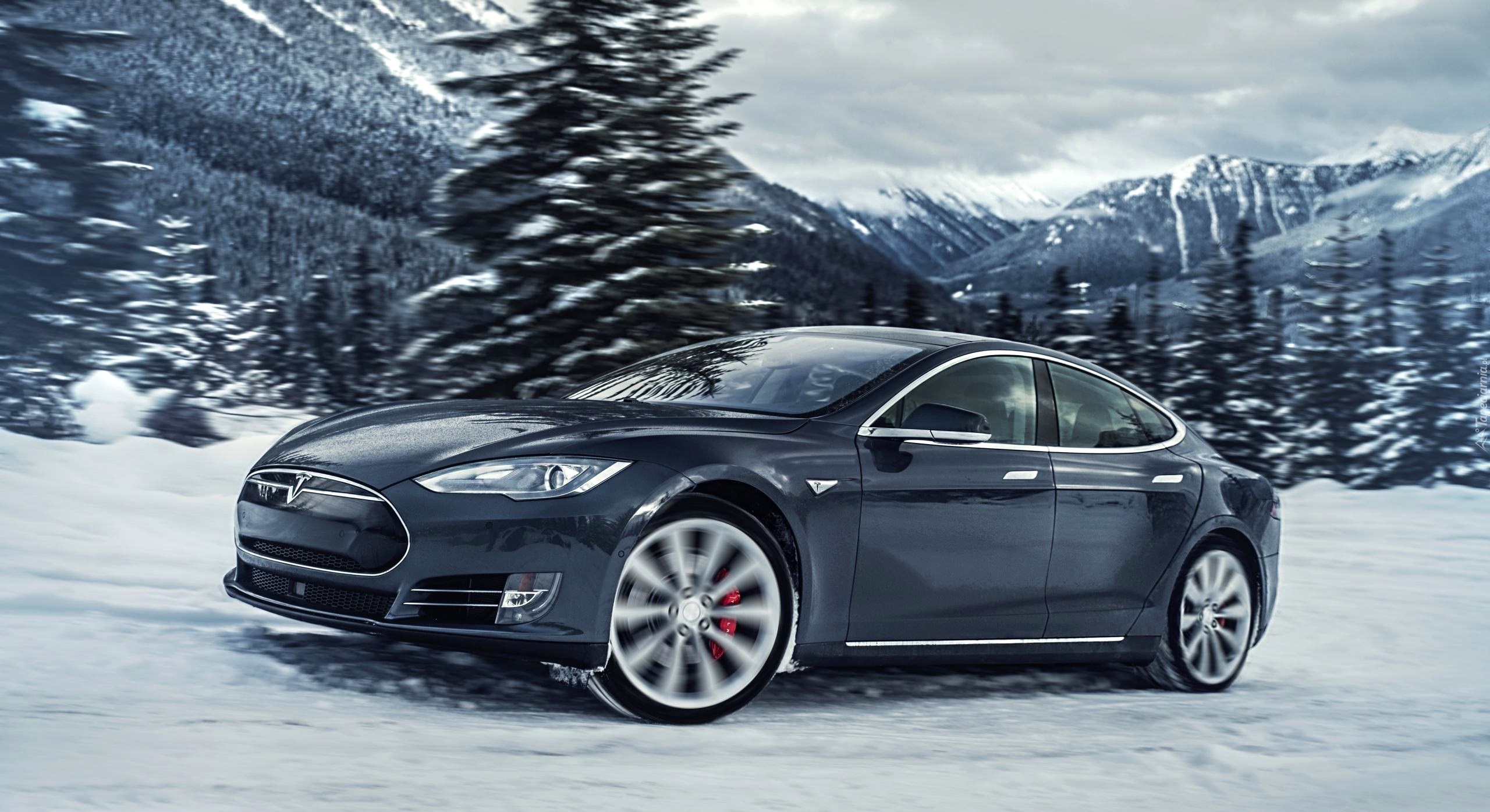 Edytor tapety: Tesla S P85D rocznik 2015 w zimowej scenerii