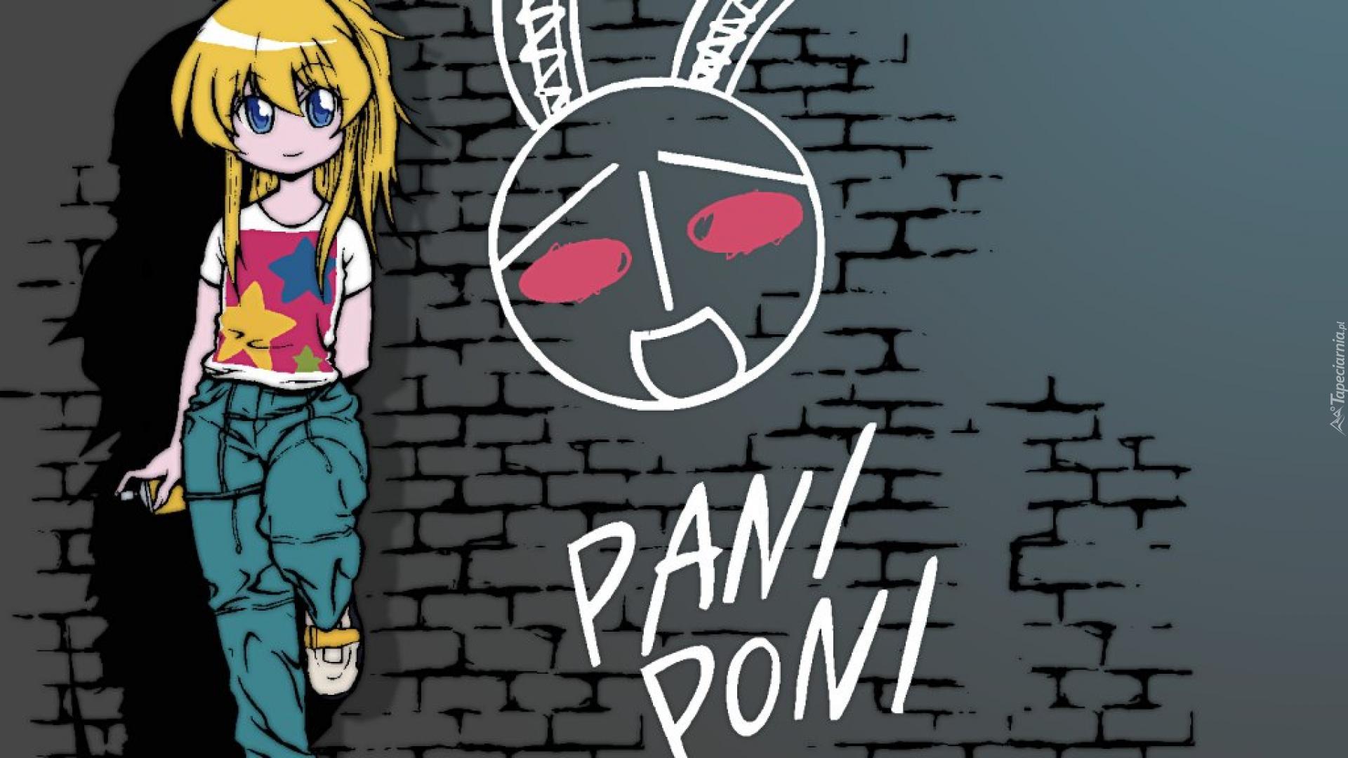 Edytor tapety: Pani Poni Dash, dziewczyna, mur, napis